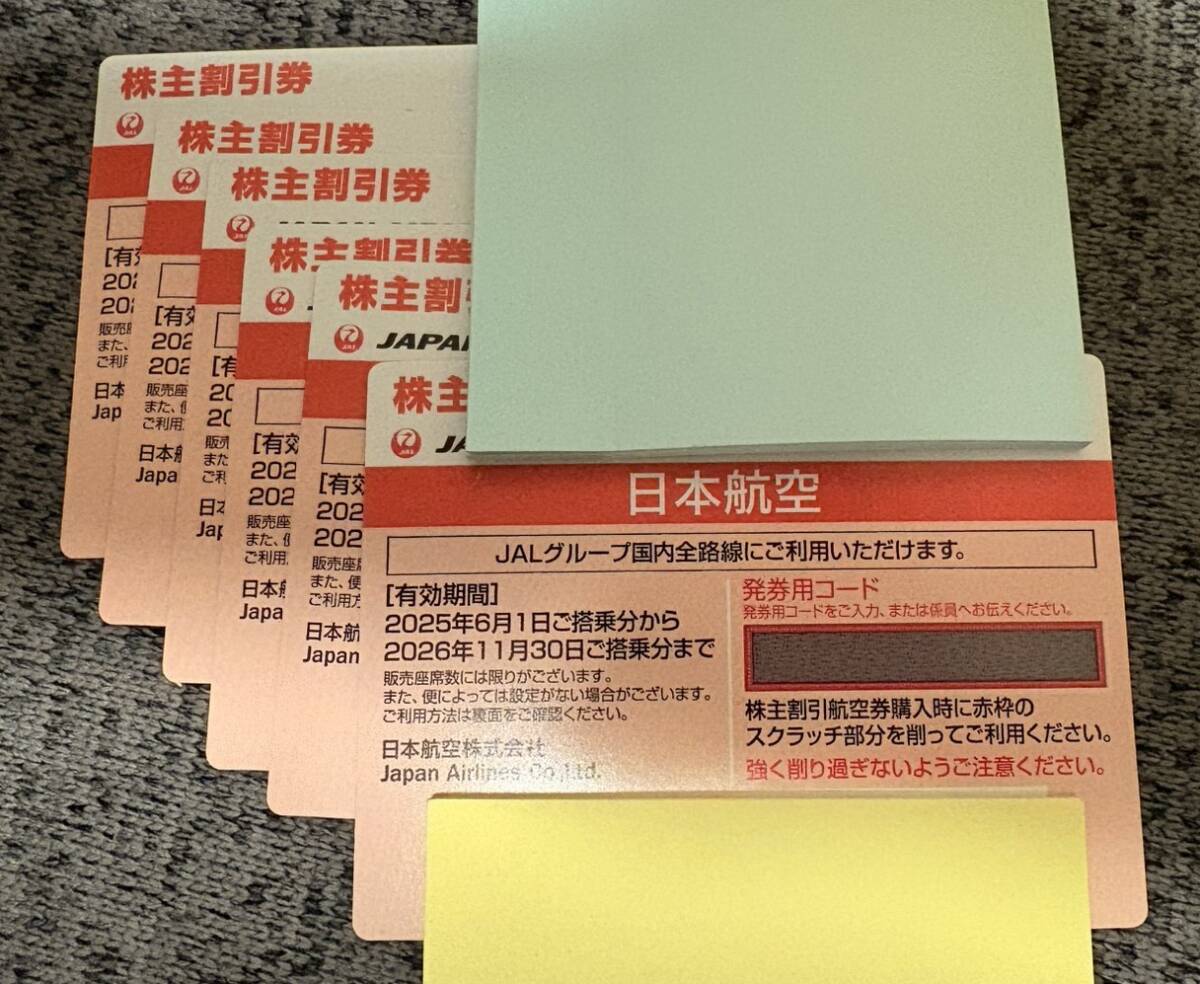 JAL 株主優待券 6枚 コード通知可 有効期限2026年11月末まで/即日対応