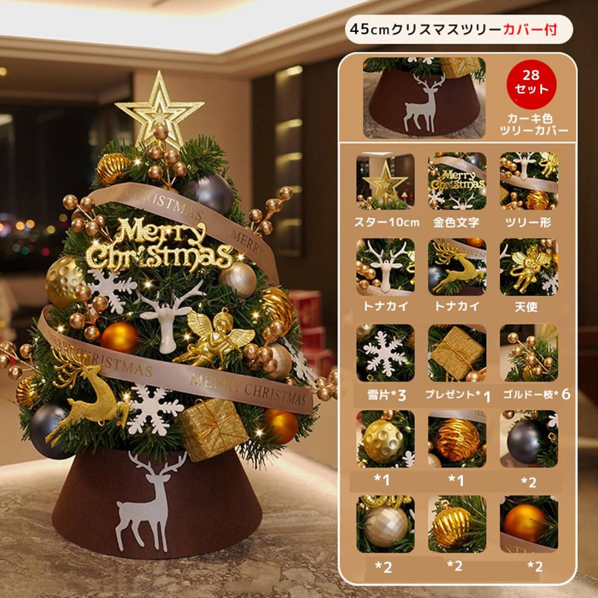 【2026 発売】 クリスマスツリー テーブルトップミニツリー 45cm 付属品28点 組み立て簡単 収納便利 クリスマスデコレーション