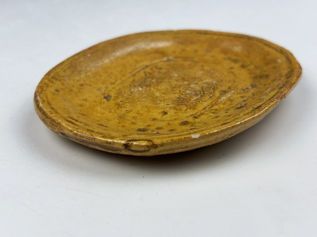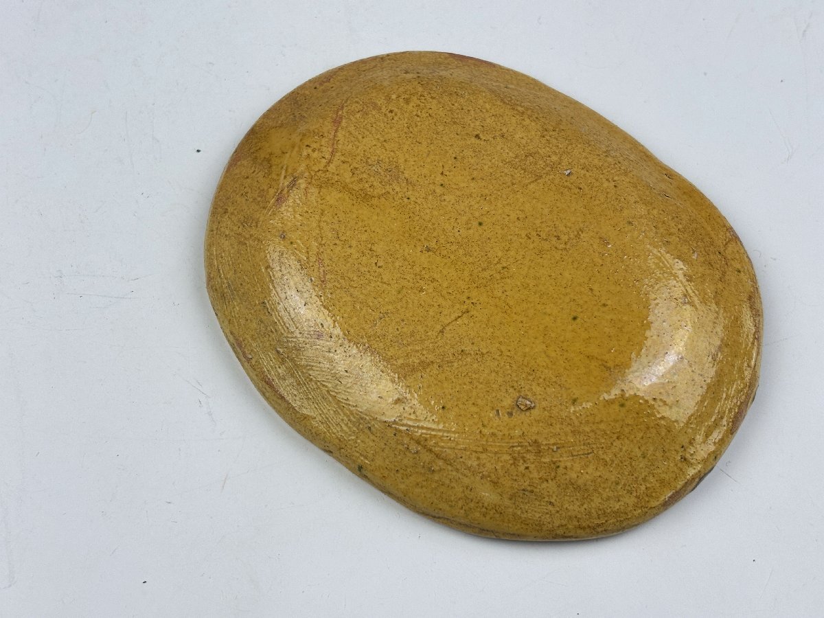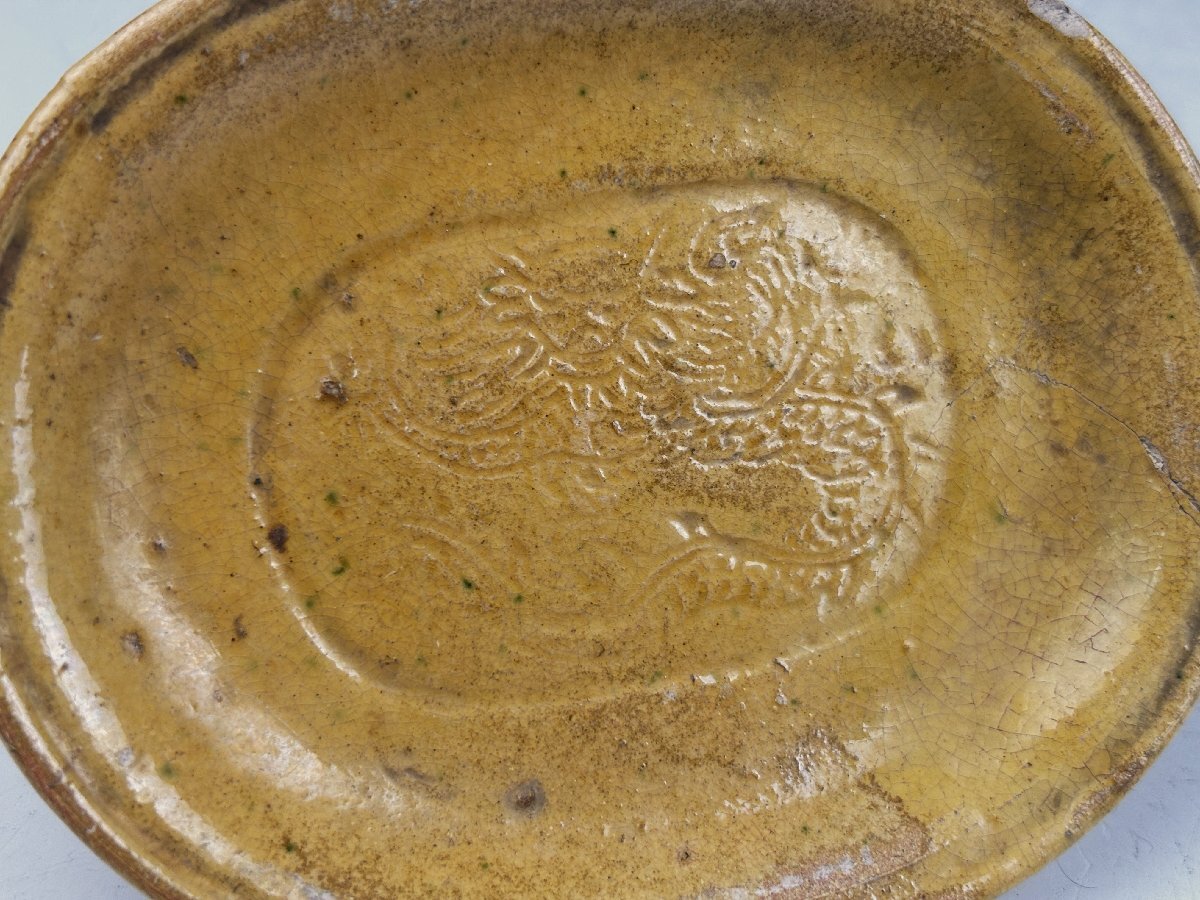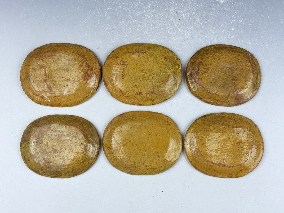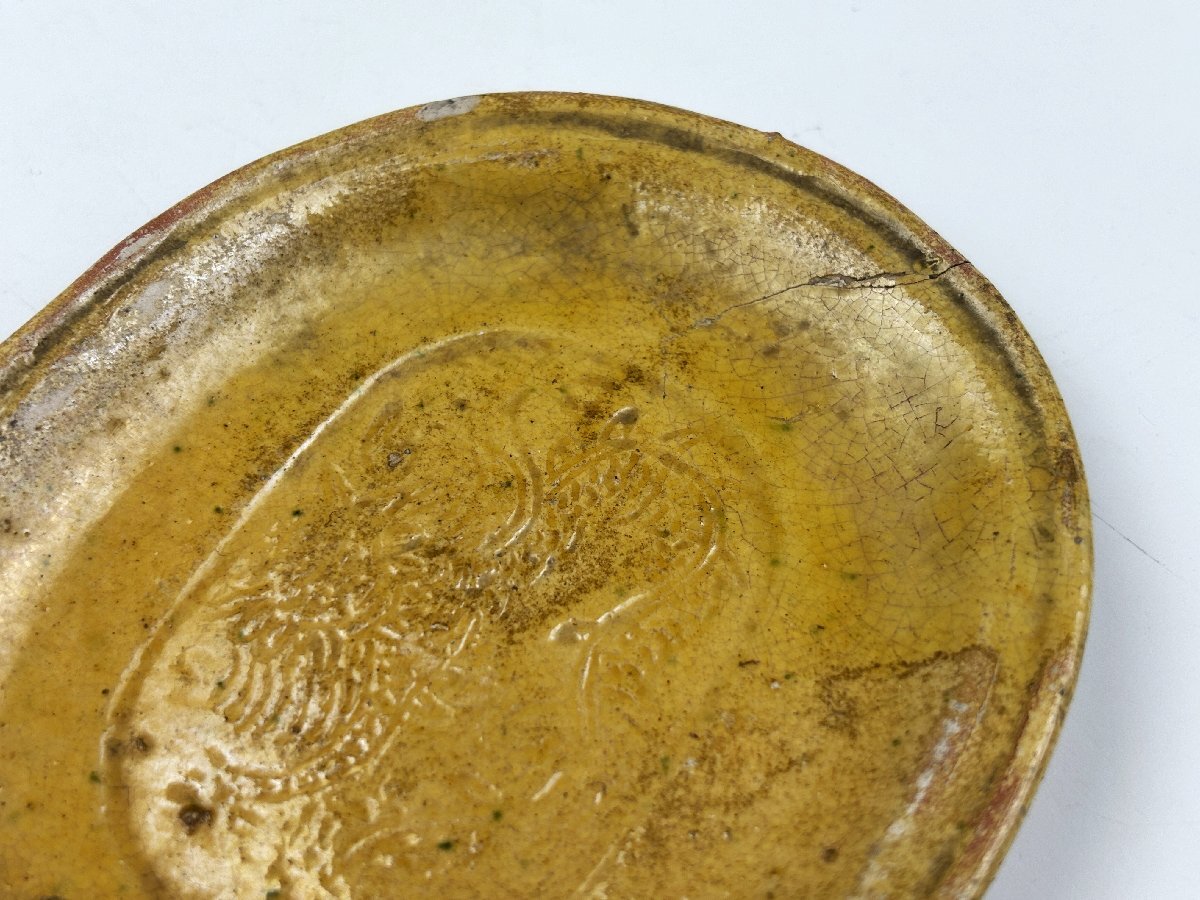 時代物 珉平焼 淡路焼 黄交趾 龍文刻 小判形 小皿 豆皿 楕円皿 銘々皿 取皿 6客 懐石 和食器 茶道具 江戸後期 古陶磁器 古美術骨董品 FRS214