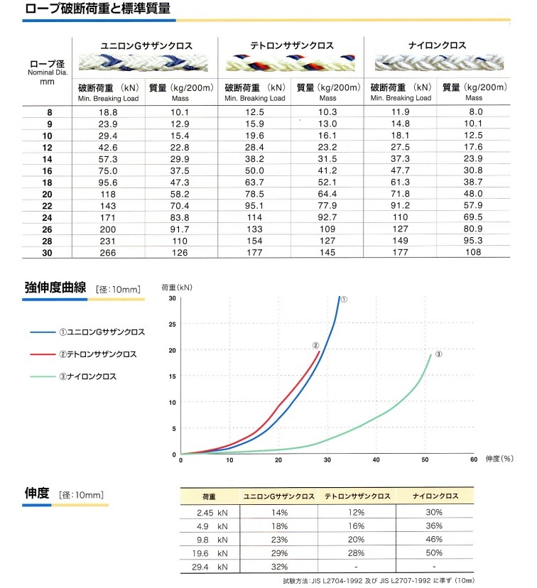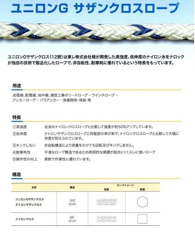 Φ10mm-100m ナロック ユニロンG サザンクロスロープ  両アイ加工 破断荷重29.4Kn 入線用ロープ