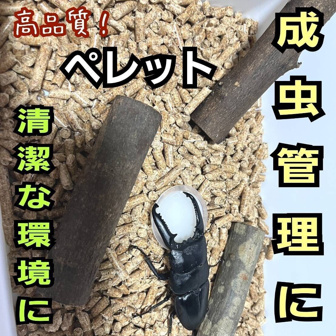 こだわりのクワガタ、カブトムシ用品を30年以上製造してきました。 たくさんのリピーター様には大変感謝申し上げます。 カブトムシ・クワガタの成虫飼育専用に開発された爽やかな香りの針葉樹ペレットの出品です。 ![]() (写真添付欄に画像を10枚載せてありますのでご覧下さいませ) カブトムシやクワガタの成虫管理には明るい色のペレットがお薦めです。 ![]() 一般的な昆虫マットは黒っぽい色なので飼育ケース内が暗くなってしまい、同じような色のカブトムシやクワガタは目立たなくなってしまいます。 その点、ペレットは明るいクリーム色ですので、飼育ケース内がパッと明るくなり、クワガタ、カブトムシと対照的な色合いのため生体が栄えてかっこ良く見えハッキリ観察できます! ![]() 観賞用として抜群のマットなのです。 クワガタ、カブトムシが目立ち飼育がより一層楽しくなります。 ![]() 使い方はケースの底に3cm程度敷き詰めるだけです。 ペレットとは針葉樹を細かく砕いて圧縮成形した木質のマットです。 ![]() 昆虫飼育や動物用の床材として最適です。 さらに針葉樹ペレットのメリットは広葉樹のマットと違い嫌な臭いやダニが発生しません。 さらに生体のダニ取りにも効果があるのです。 ![]() 無農薬の国産針葉樹のみを粉砕してあるのでカブトムシ、クワガタ には無害で安心してご使用できます。 針葉樹の持つ防虫、抗菌、消臭効果抜群です。 成虫管理には是非お勧めです。 「フィトンチッド」などの天然成分が、雑菌の繁殖やカビの発生を抑える効果があります。 弱殺菌処理でクワガタ、カブトムシに有害な成分を除去までしてくれるのです。 木の自然な香りがあり、部屋の中でも使いやすいです。 消臭効果もあり清潔な環境を保ちます。 ペレット状なので保管や交換が簡単。崩すとおがくず状になります。 また、ペレットは余分な水分を吸収してくれます。 水分を吸収すると画像のようにマットがパウター状になり3倍の容量に増えます。 ![]() ふかふかで暖かいパウターマットは越冬用のマットとしても最高の寝床になります。 広葉樹の発酵マットのような臭い匂いではなく、針葉樹の持つ、ほのかに爽やかな香りで気持ちよく昆虫飼育ができます。 数量:30リットル (水分を吸収するとフワフワになり30リットルが90リットルくらいの容量に増えます) チャック付きの袋で長期保存もできます。 ご希望のリットル数などございましたら質問欄からお気軽にお尋ね下さいませ。 す 。 1箱に最大100リットルまで同梱できます。 ※ペレットは幼虫の餌、産卵マットには使えません。 成虫管理専用です。 小動物・鳥・爬虫類用の敷材、猫のトイレにも使えます。 天然木がもつ抗菌力が、尿の腐敗臭の発生を強力に抑え、長時間無臭環境を保ちます。 吸湿性に優れ、湿気に弱い動物(ハムスター等)には、敷き材として最適です。 卓越した吸水力で、1ヶ月の使用量も少量ですみ非常にコスパに優れます。 尿を吸って崩れた部分の抗菌効果は約3~5日継続します。 可燃ごみとして処理する事ができます。 他にも幼虫が大きく育つプレミアム3次発酵マット、オオクワガタ専用カロリーマット、ヒマラヤひらたけ発酵マットや菌糸ボトル、菌糸ブロック、ハイグレードプロゼリーなども出品していますので私のその他の出品もご覧くださいませ。 私の出品者名をクリックして頂けたら商品一覧が見れます。 メッセージ頂けたら同梱も可能です。 購入後の飼育サポートも致します。 |