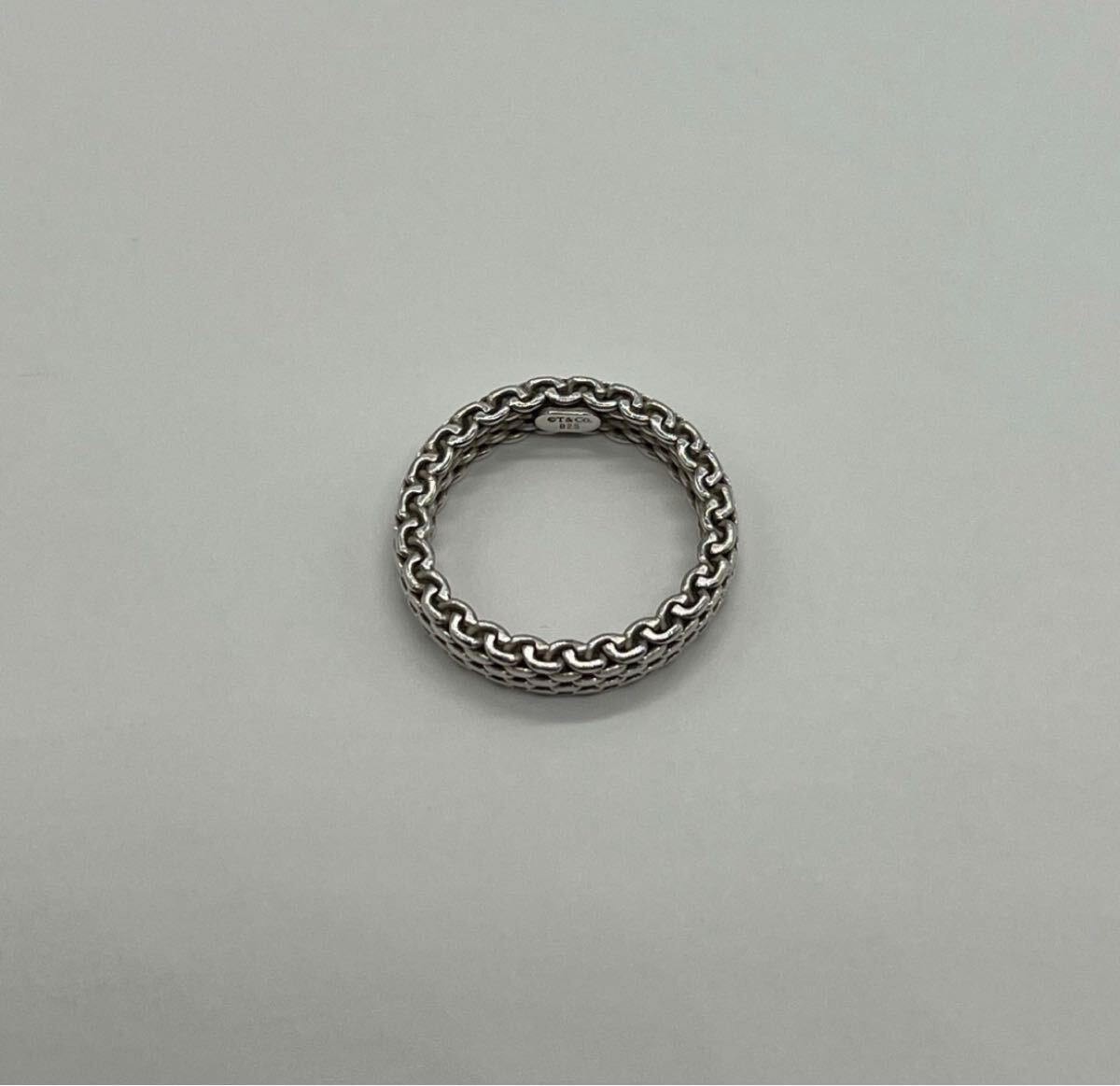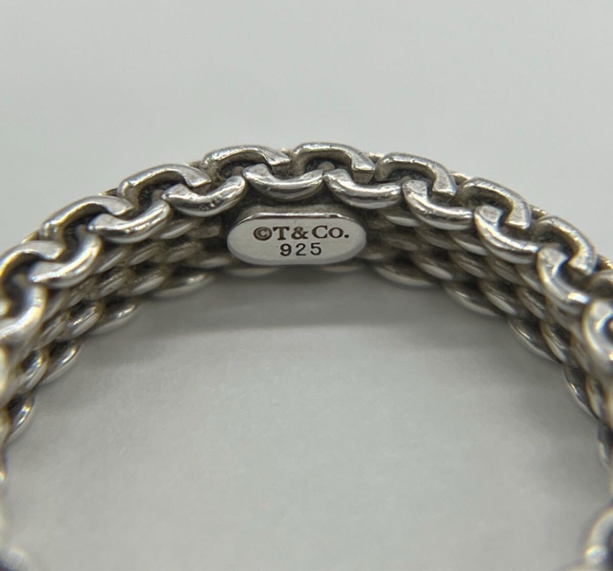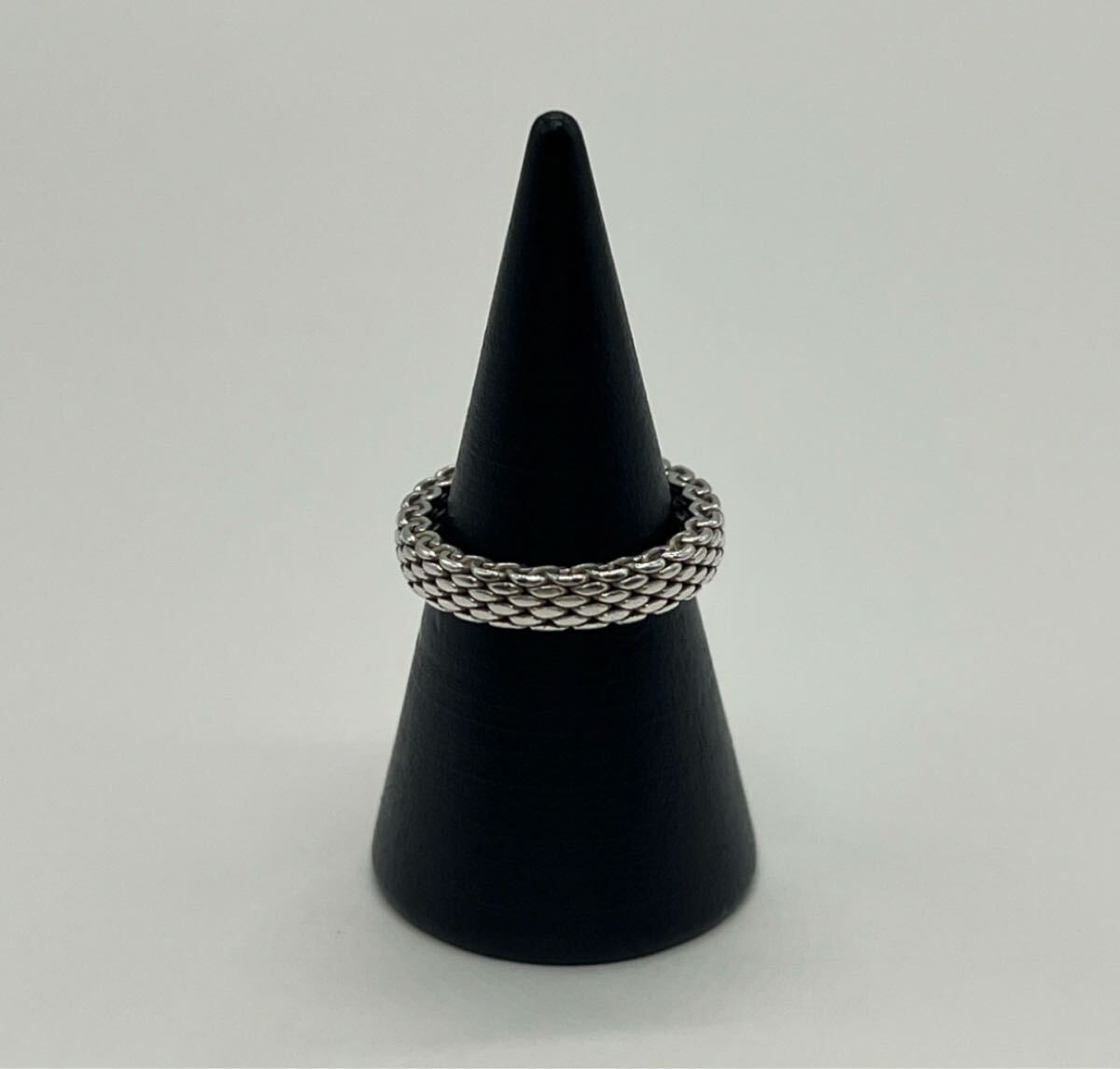 ヴィンテージティファニーで人気のサマセットリングはメッシュのデザインが特徴的で、ワイド幅のデザインが多い中でナロー幅のリングは市場に出回りの少ない希少なお品物でございます。