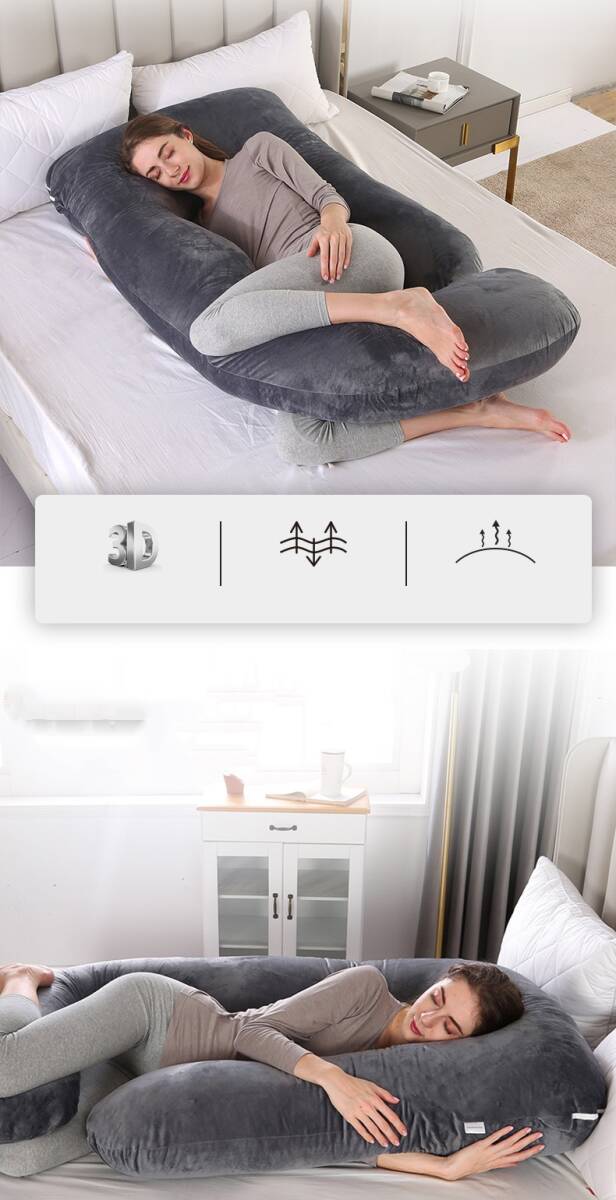 抱き枕等身大クッションU型 無印 マタニティ 妊婦 クッション 水晶マイクロファイバー 授乳クッション 大きい枕 腹部をサポート9