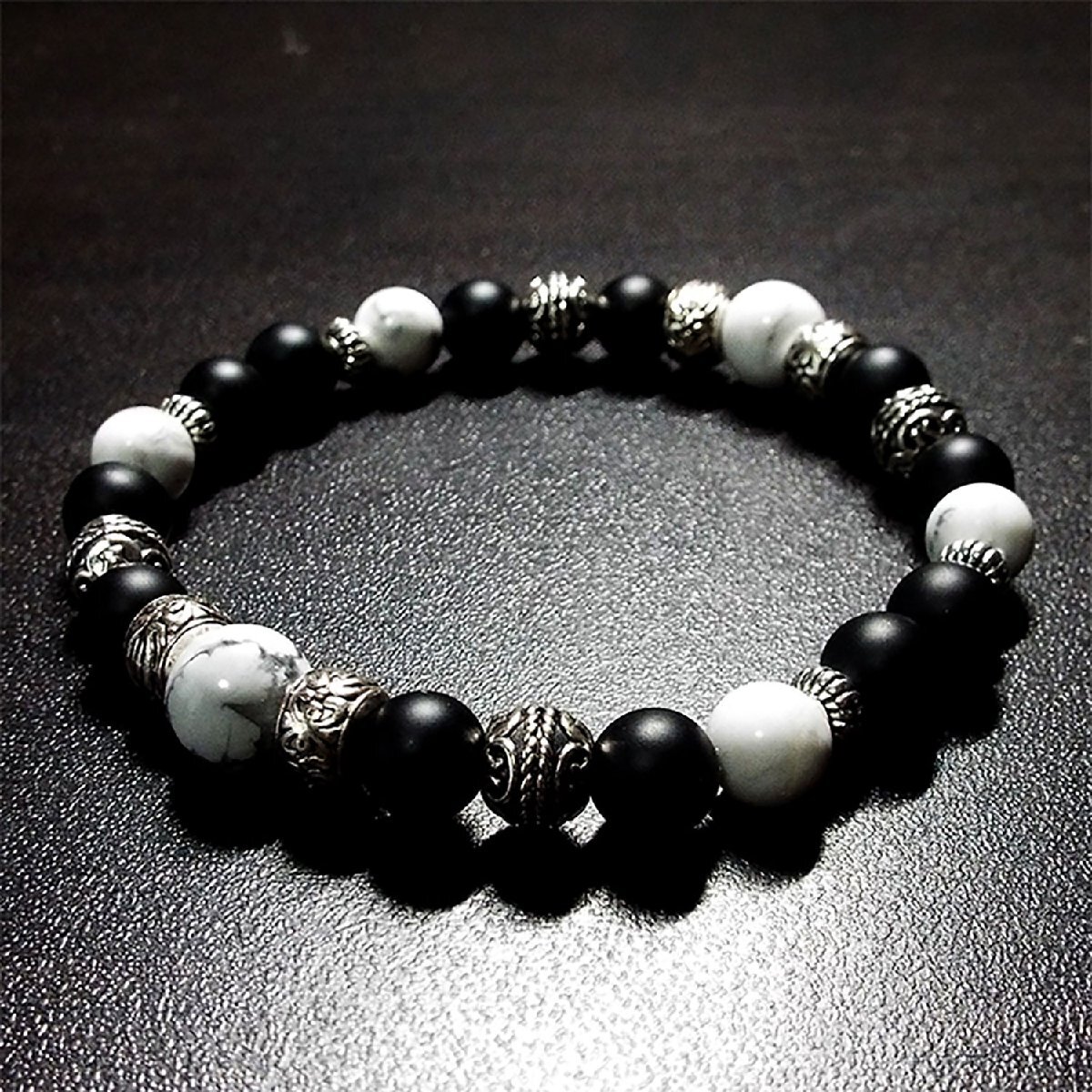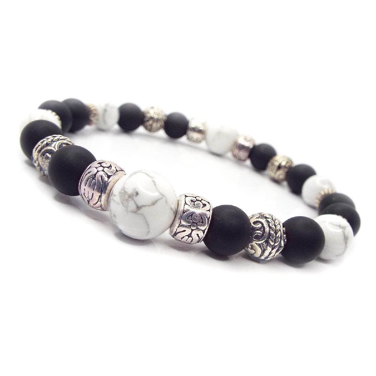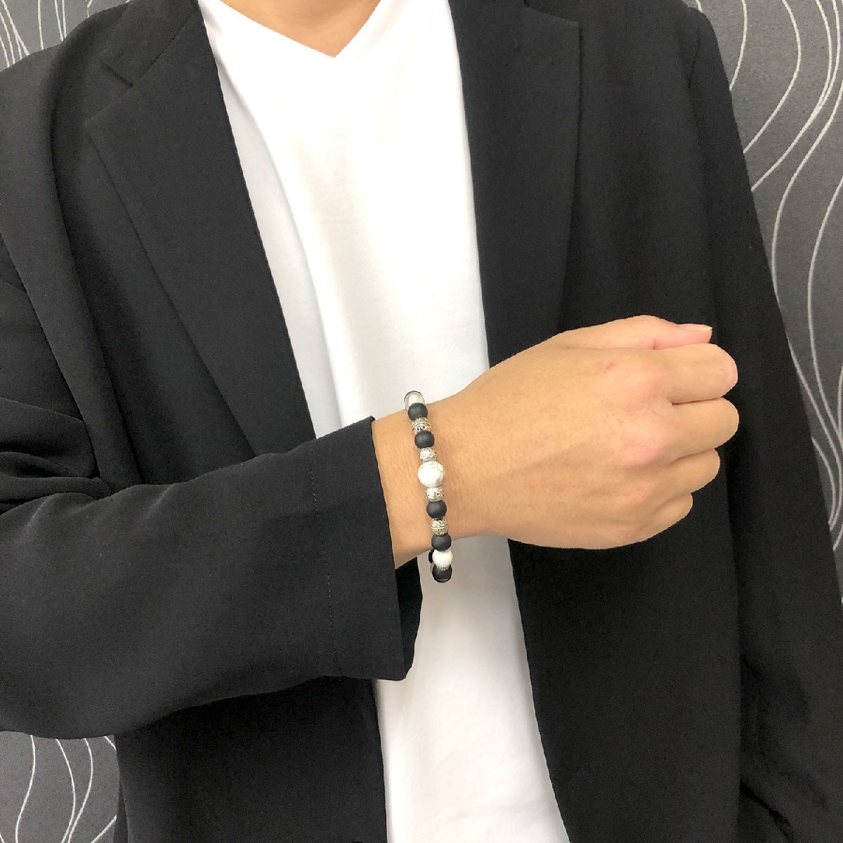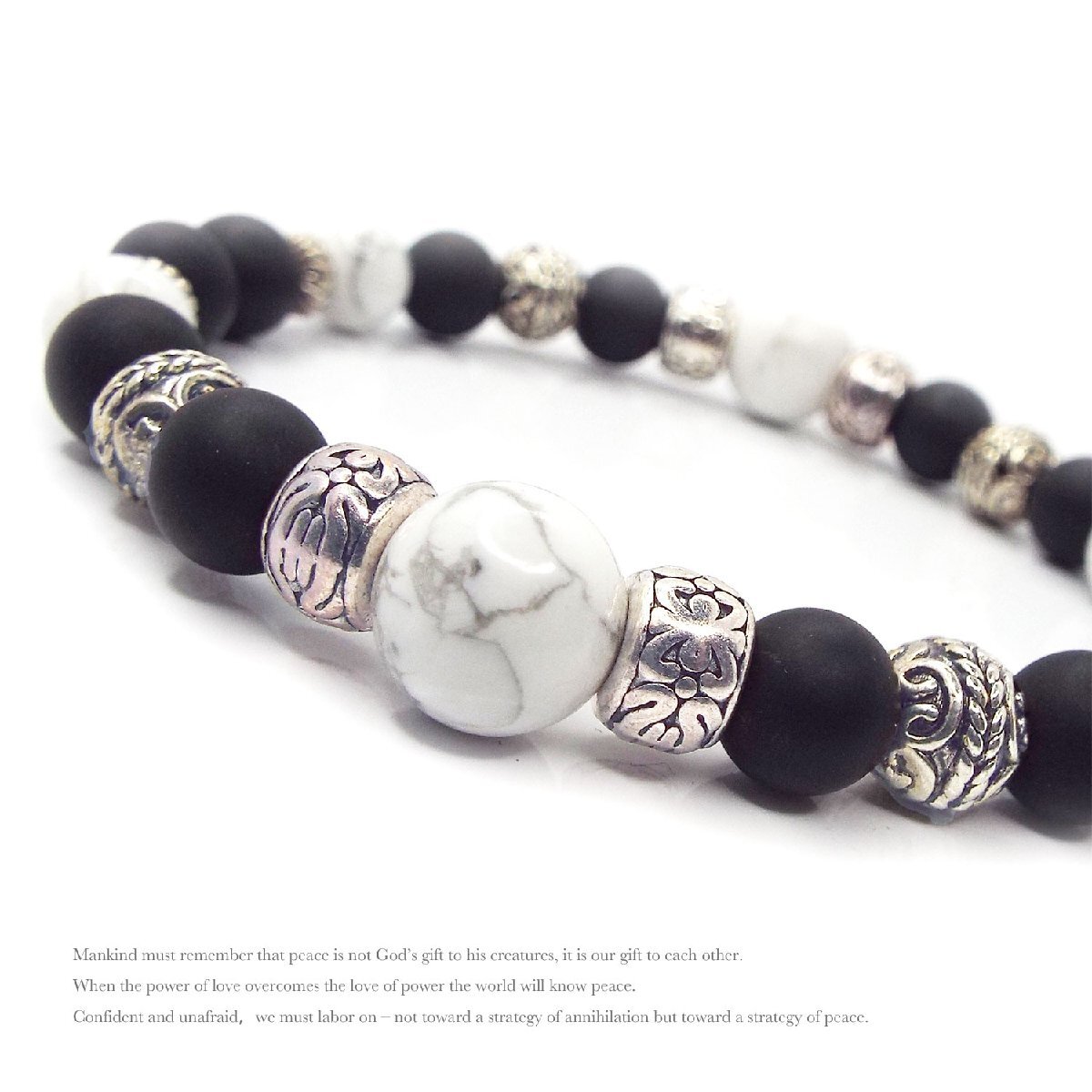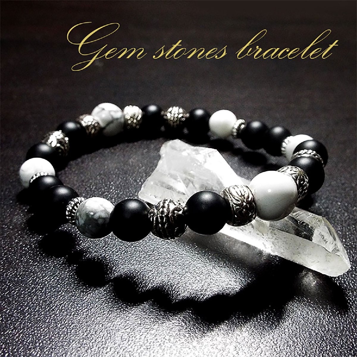 | 【STONE KITCHEN 天然石 パワーストーン】 人気スタイル、細身ブレスのメンズ新作☆ 落ち着いた印象を与えてくれるブレスレット♪ ホワイトターコイズとマットオニキスの組み合わせは、変化に順応するエネルギーを もたらし力を高める効果があるといわれています。 以前失敗したことに再チャレンジするときによいでしょう。 内周:約19cm サイズ:ホワイトターコイズ 10mm・8mm マットオニキス 8mm 1点 注意事項 ※金属部分は汗や汚れ等で変色する場合がございます。気になる場合は 金属磨きや布等で軽くふき取る事をおすすめします。 ※石の種類によっては、艶を引き出すことを目的として、ワックスや着色加工がされているものもあります。 ※表示のサイズは必ずしも最大値・最小値のサイズのものが入っているわけではございません。 ※天然石のため同じものでも色味・模様などが異なります。 ※照明の具合で実際とは色合いが異なる場合がございます。 また、天然素材特有のクラック・内包物を有する場合がございます。予めご了承下さい。 | |||