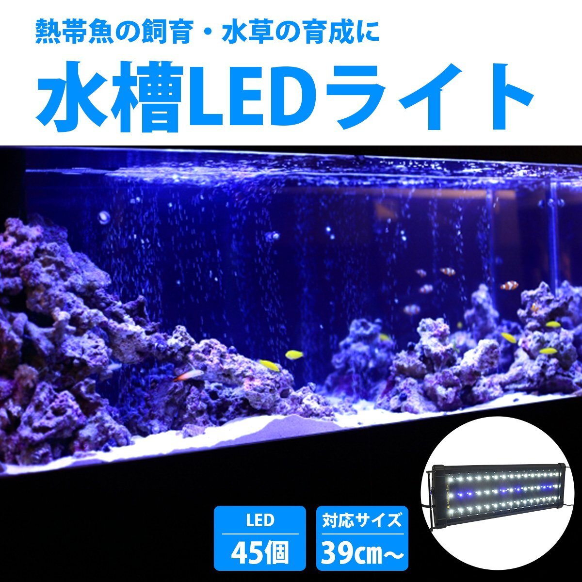40cm~60cm 青/白 水槽 LED 照明 伸縮プレート型 薄型スリムタイプ 水槽 プレート ライト サンゴ 熱帯魚 アクアリウム ライト