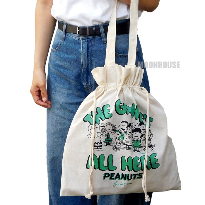送料無料 スヌーピー 2WAY 帆布 巾着 トートバッグ レディース キッズ エコバッグ レッスンバッグ マザーズバッグ 手提げバッグ 新品 C□