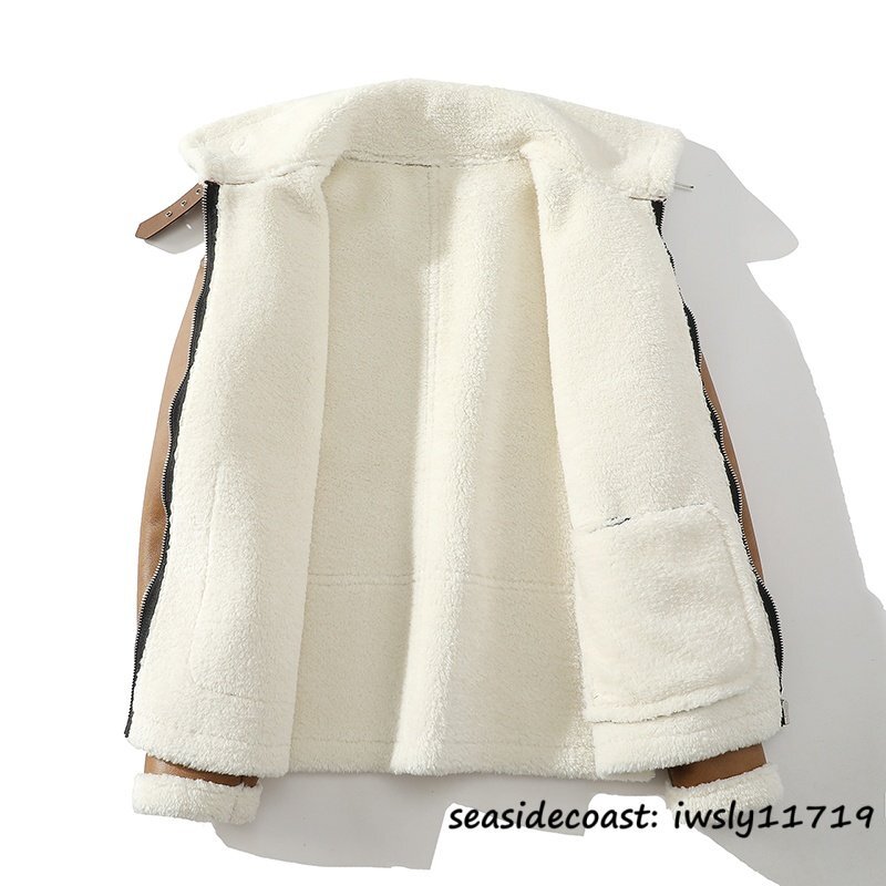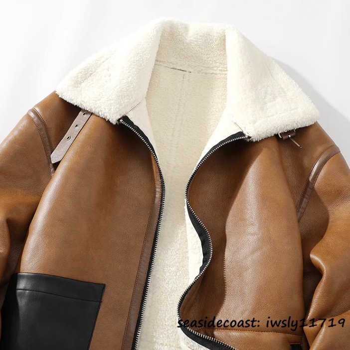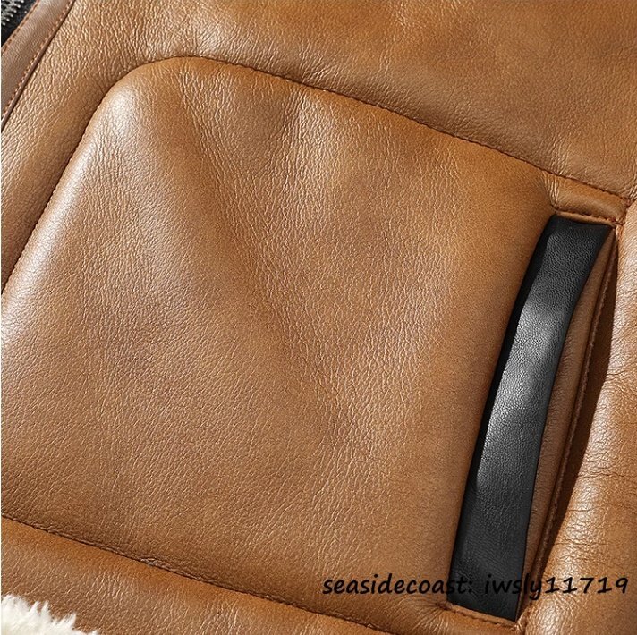 最上級*定価13万 ムートンコート 冬新品 厚手 超防寒 ライダース フライトジャケット アウター ファーコート バイクウエア ブラウン 2XL