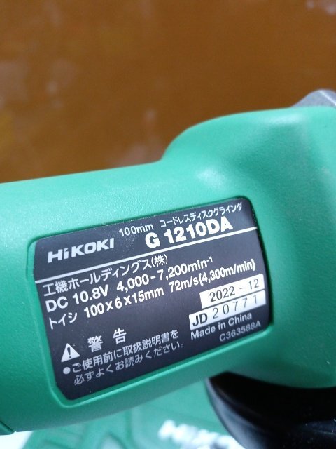 | 商品説明 | 【1円スタート!美品】HiKOKI ハイコーキ 100mm コードレスディスクグラインダー G1210DA 充電器欠品 動作良好[21-1-1-A]:930976 |