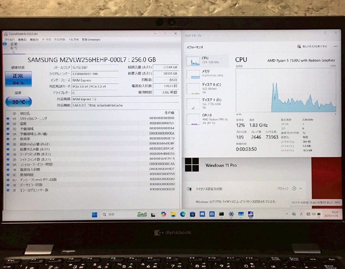 | ライセンス確認 | 〇 | CrystalDiskinfo | 〇 |