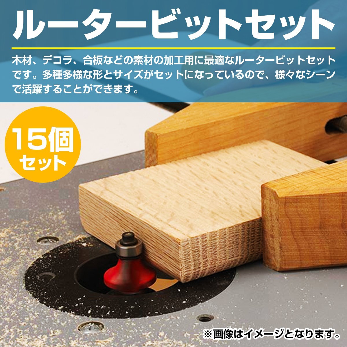木材、デコラ、合板などの素材の加工用に最適なルータービットセットです。
