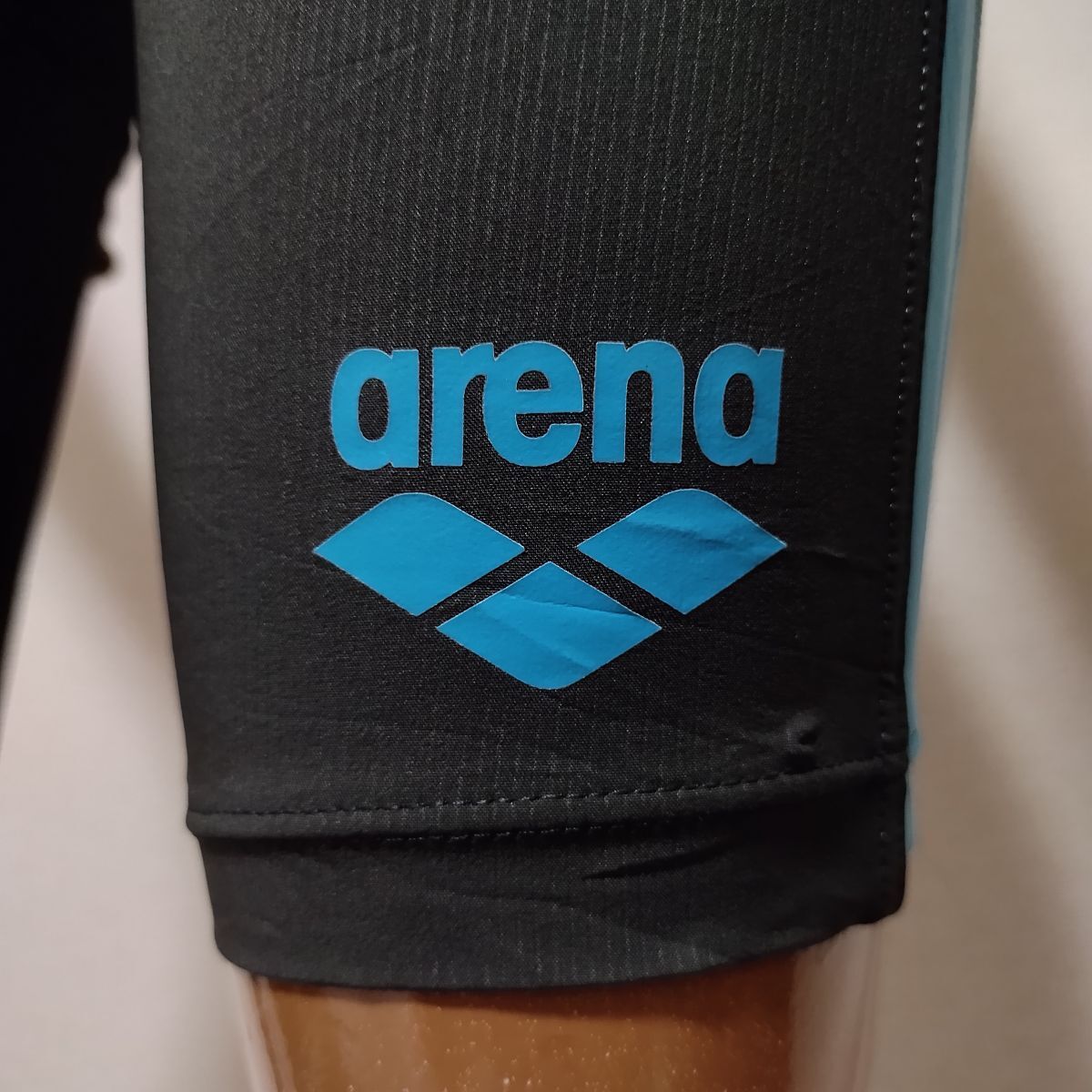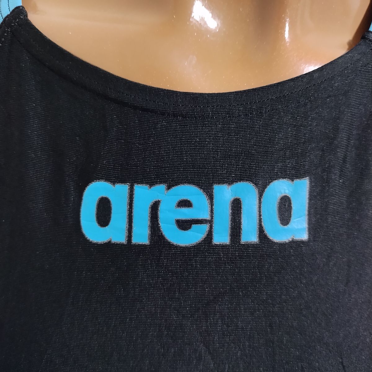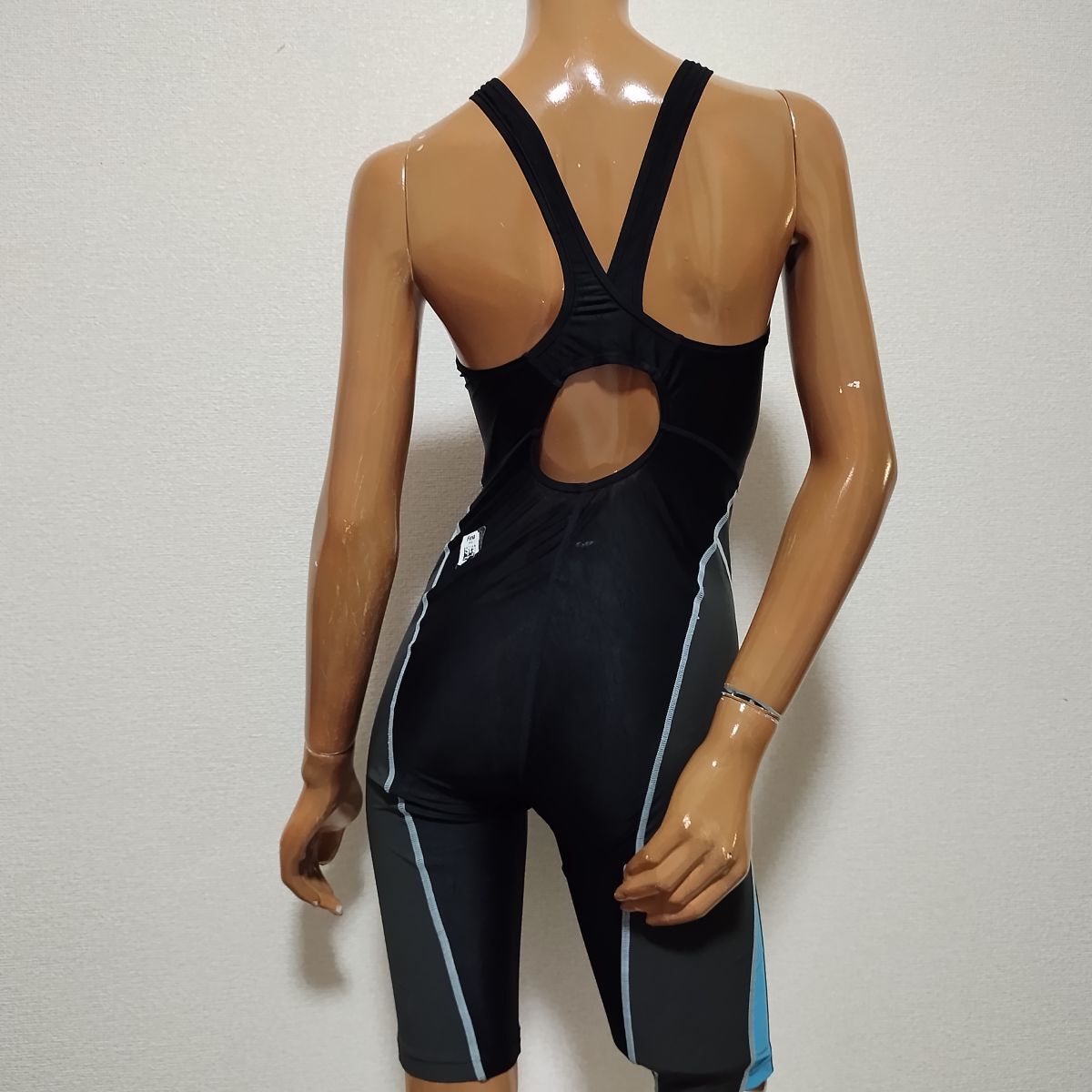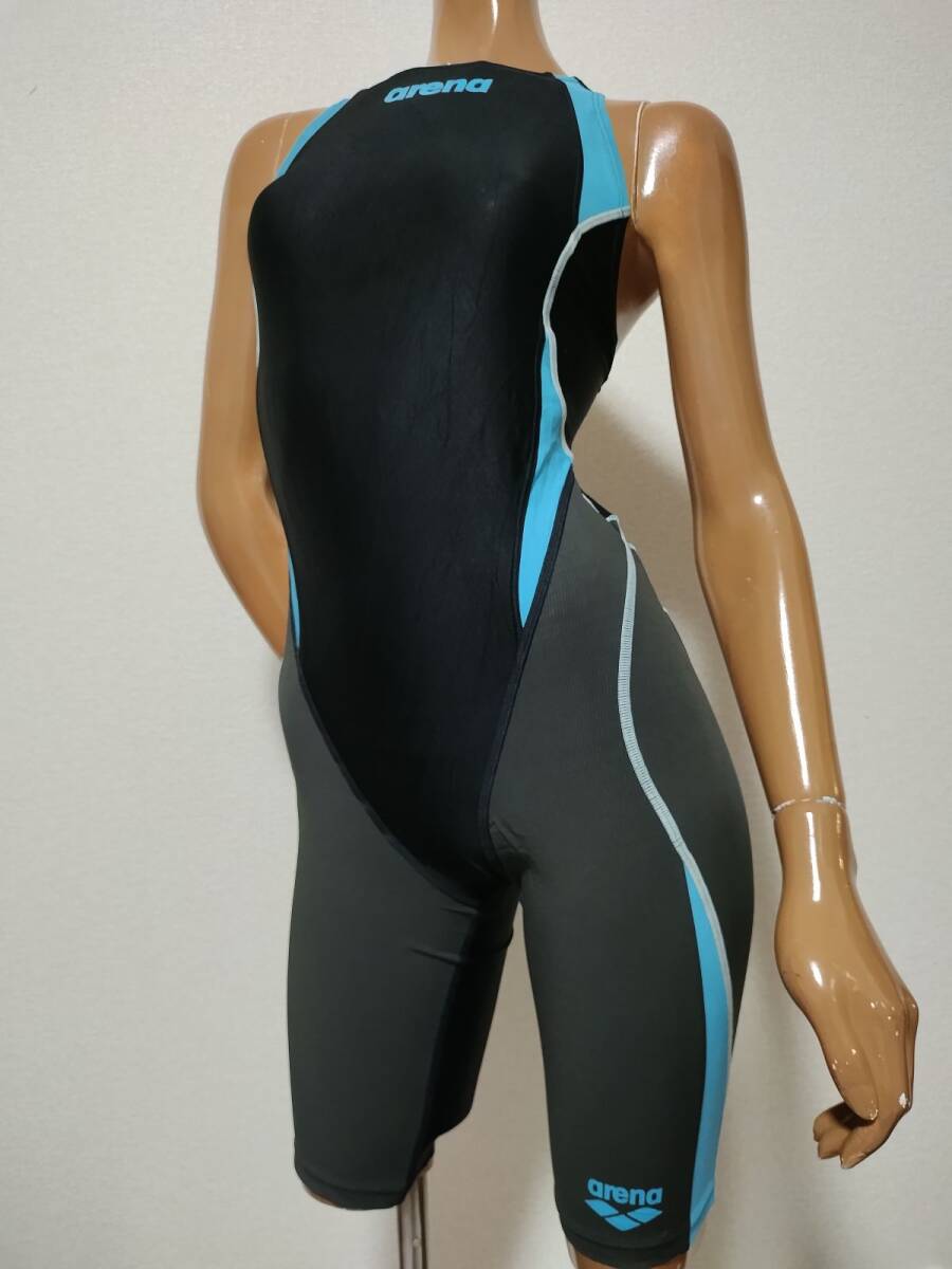 34*アリーナarena女子競泳水着11号(Lサイズ)★ARN-8080W★オープンバック光沢黒ブラック水色ブルー★Fina承認・大きいサイズ男性も