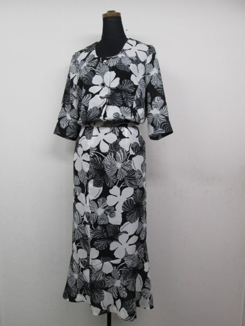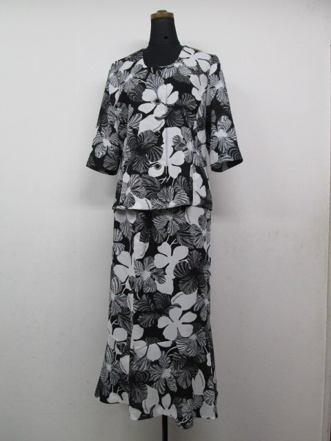 h4239 美品 Munsingwear マンシングウェア レディースセットアップ ブラック ホワイト ウエスト3段階調整 ロングスカート