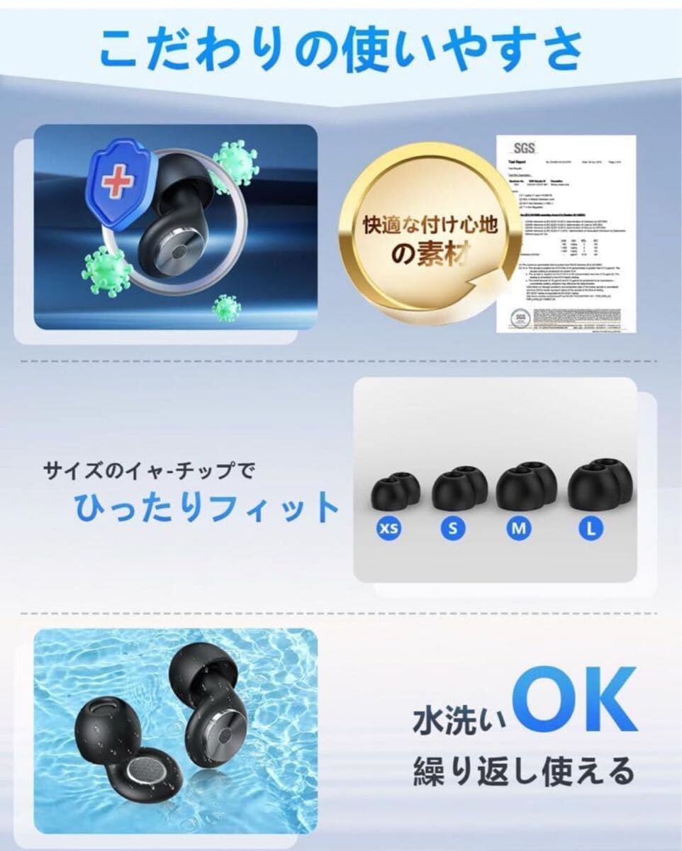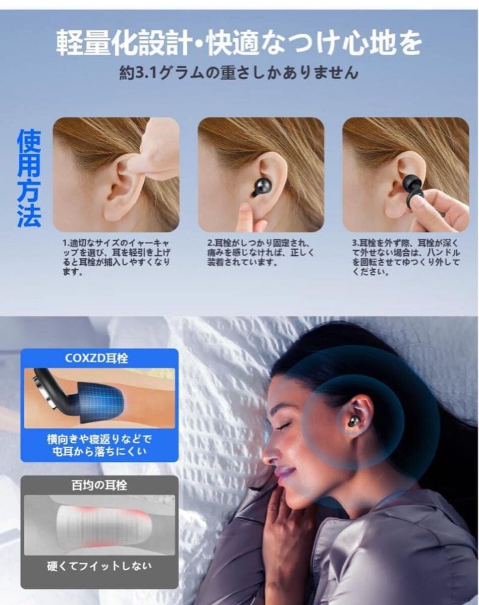人間工学なデザイン、耳にフィット】弧度が外耳道の形に合って、睡眠中に装着しても抜け落ちません、横向きで寝ても圧迫感がなく。 紛失の心配がなし睡眠用耳栓の左右耳(L/R)を区別して、耳をそっと引き上げ、耳栓を外耳道に入れるだけで着やすいです。4つのサイズ(S、M、L、XL)の再設計されたイヤーチップが付属し、あらゆるサイズの耳に優れた密閉性を発揮し、確実にフィットします。