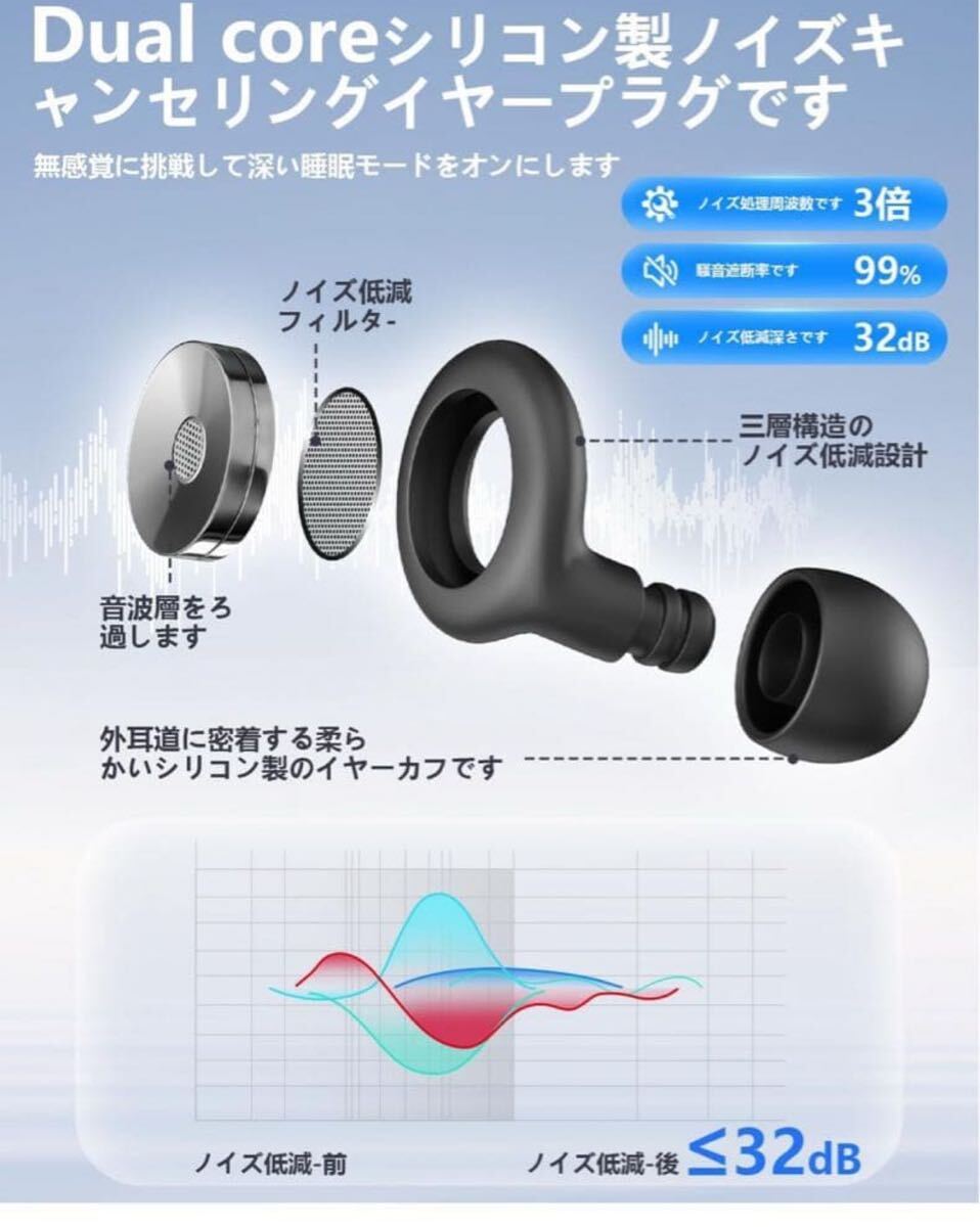 【遮音性が最重要】ソフトシリコン製で、高い防音性能を備えています、SNR値が55dBに達し。ほとんどの騒音を遮り、どこにいても静かな雰囲気に浸ることができます。睡眠の質と注意力を高め、聴力を保護します。高性能耳栓 は 睡眠用耳栓 として最適な音量に 減音 してくれるだけでなく、 勉強 や 仕事 で 集中。
