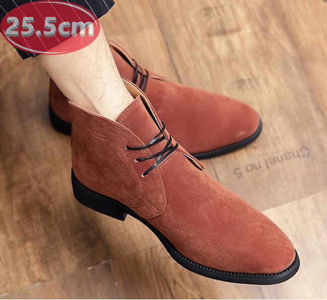 メンズ ビジネス PUレザー シューズ レッド 25.5㎝ 革靴 靴 カジュアル 屈曲性 通勤 軽量 インポート品【n154】