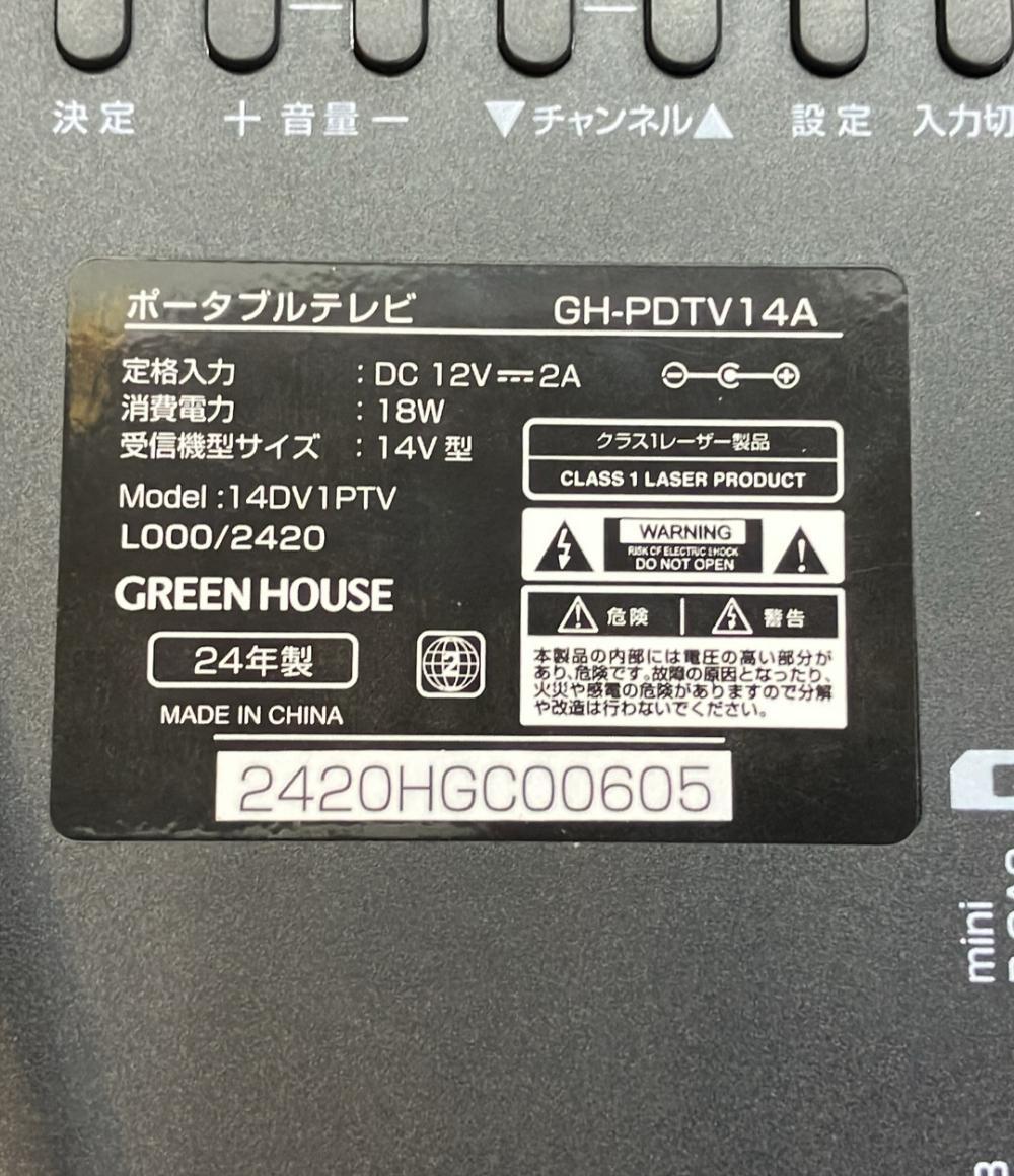 | アイテム名 | GREEN HOUSE 14V型 ポータブルテレビ GH-PDTV14A |