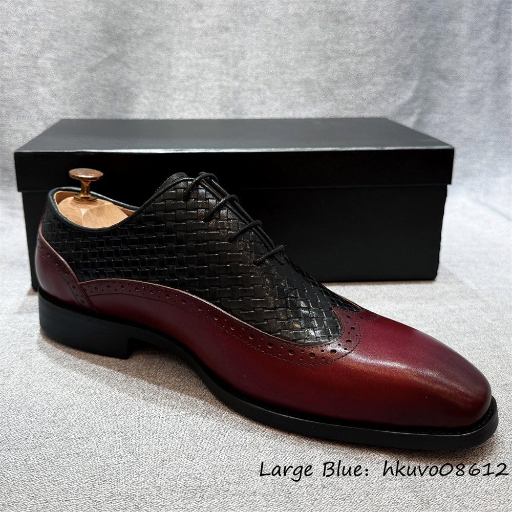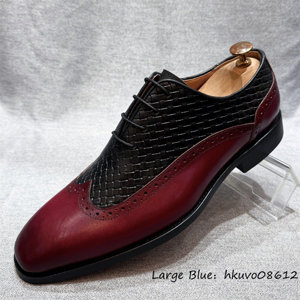 入手困難■メンズ ビジネスシューズ 編み込み 最高級 牛革 職人手作り 手塗り上げ レザーシューズ 本革 紳士 革靴 フォーマル 宴会 27.5cm