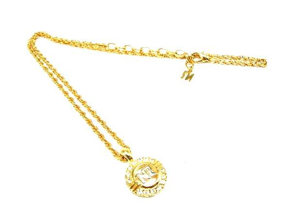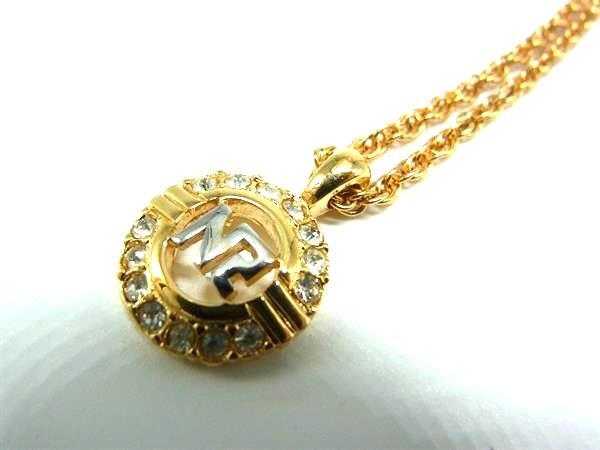 ■美品■ NINA RICCI ニナリッチ ロゴ ラインストーン ネックレス ペンダント アクセサリー レディース ゴールド系 DK4683