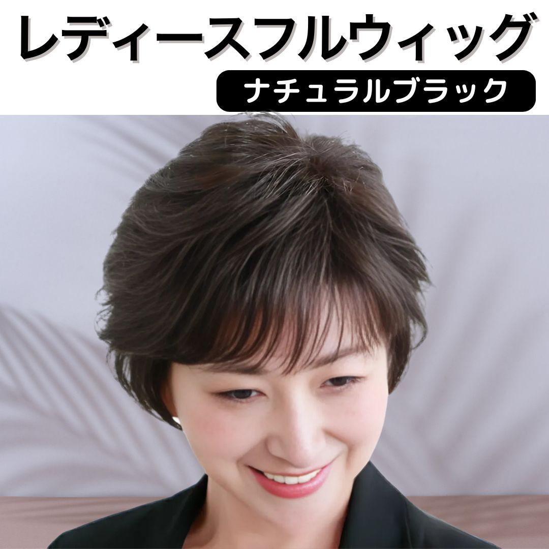 レディース フルウィッグ かつら ショート ボブ ナチュラルブラック ウィッグネット付属 匿名配送