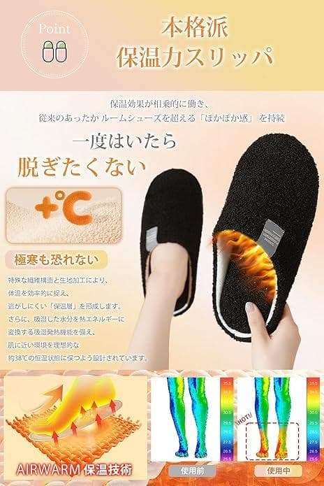 足入れした瞬間からぽかぽか。ふわふわの裏起毛(ボア)で足先から甲まで包み込む冬用ルームシューズです。