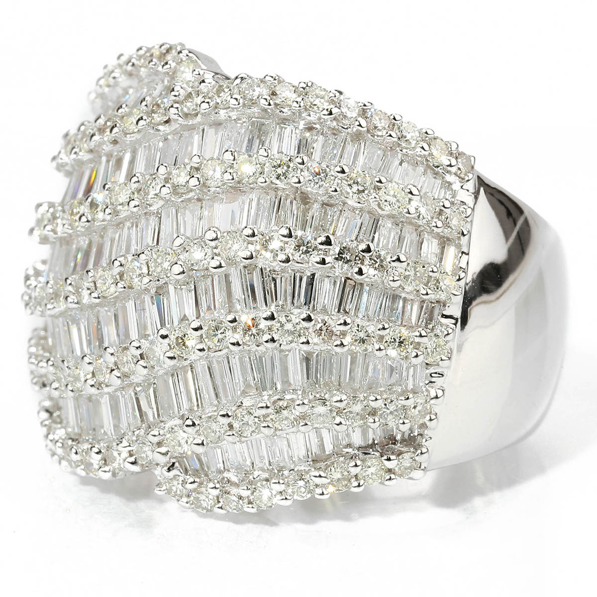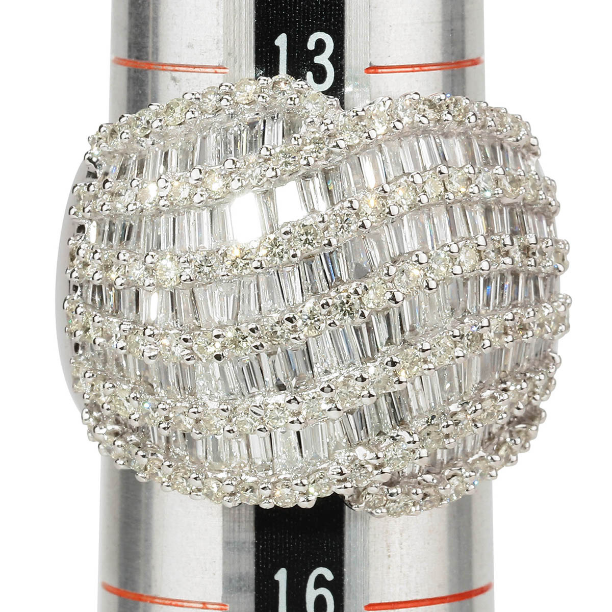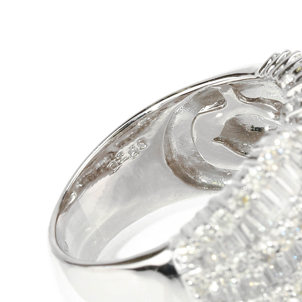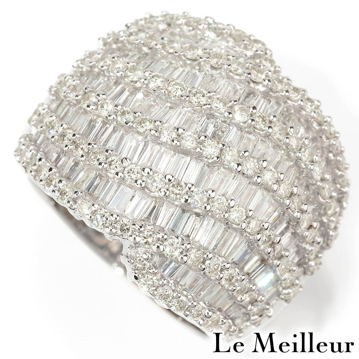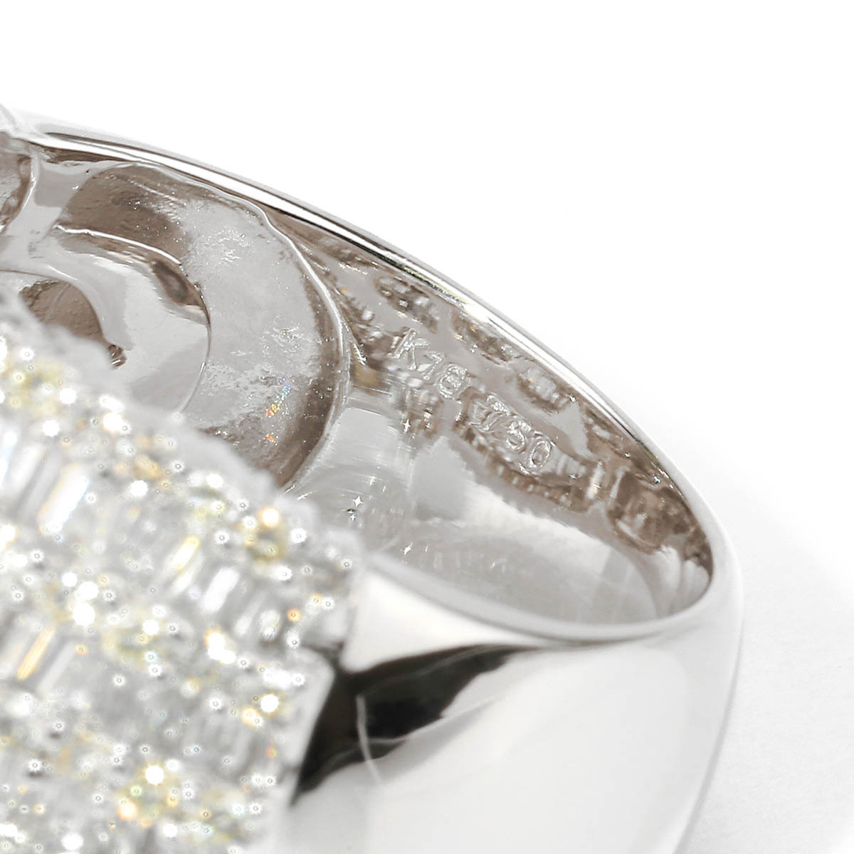 曲線 エレガント 華やか ボリューム 幅広 カーブ ゴージャス キラキラ 普段使い デイリー パーティー 4月 誕生石 カクテルリング ダイア ラウンドブリリアントカット バケットカット テーパーカット レール留め カクテルリング 18金 WG 20代 30代 40代 50代 60代 70代 USED ユーズド 中古 リユース リング・指輪 LEAT2335
