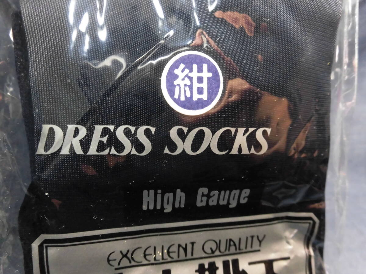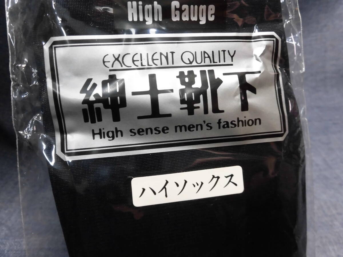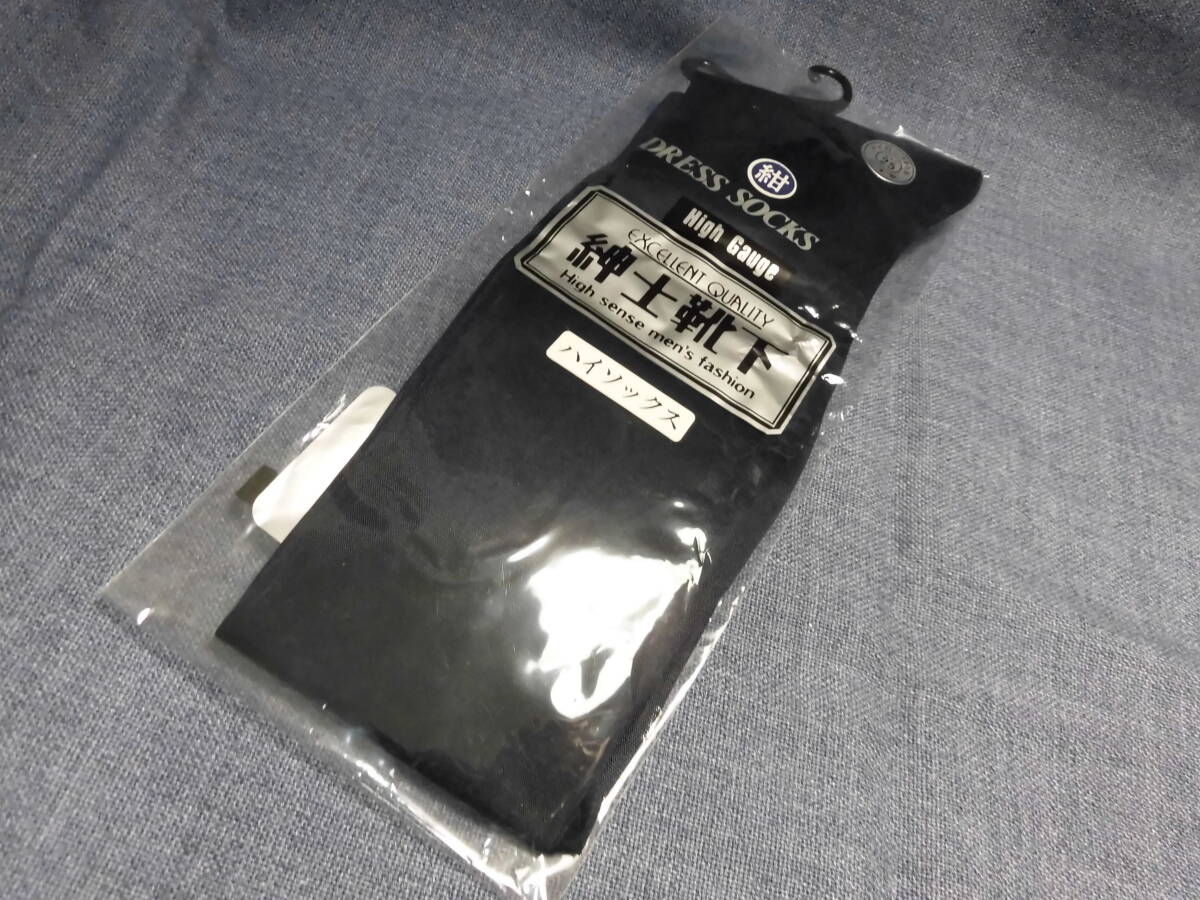 レトロ 日本製 ハイソックス ロング 紳士用靴下 ナイロン100% ドレス ビジネス メンズ シースルー 薄手 紺 光沢 5694