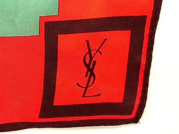 YVESSAINTLAURENT イヴサンローラン シルク100% スカーフ ストール レディース レッド系×マルチカラー DJ0222