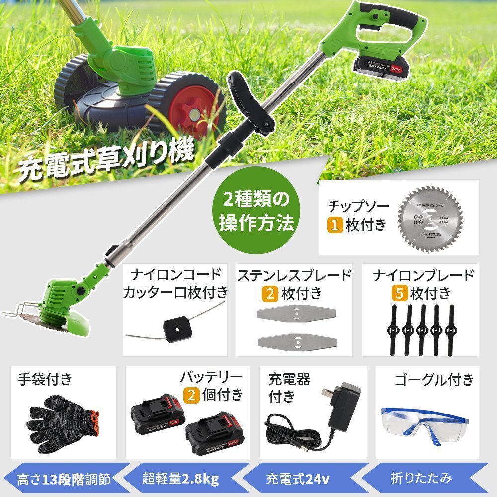 草刈り機 充電式 折りたたみ 超軽量 高速回転 大容量バッテリー 3段階角度調節 伸縮角度調整 チップソー ブレード 電気草刈機