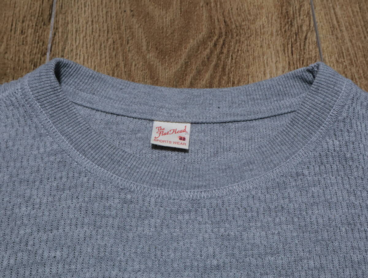 ■THE FLAT HEAD フラットヘッド■サーマル ロング Tシャツ■メンズ 42 霜降りグレー 無地 長袖 クルーネック 日本製■ワッフル ロンT