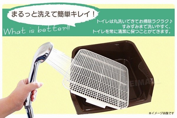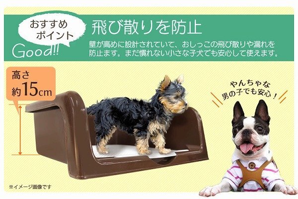 子犬がトイレをおぼえやすい囲い付きタイプ。 壁付きなのでトイレのしつけがしやすく、おしっこの飛び散りや漏れを抑えます。 メッシュを外すことができ、簡単にシーツの交換ができます。 トイレトレーニングが終われば、メッシュを外して通常のトイレとして使用することができます。 プラスチック製なので、水洗いできてお手入れ簡単です。 【商品仕様】 対象:超小型犬、小型犬 カラー:ブラウン サイズ(約):幅40.5×奥行41×高さ15cm 重量(約):800g 材質:ポリプロピレン |