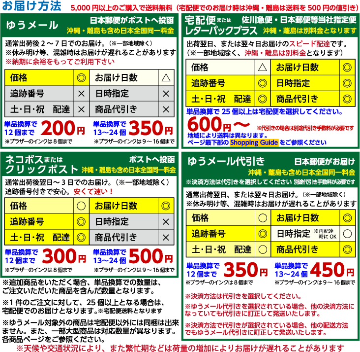 如果合寄打包的商品超过5件,每增加4件,加收人工费用300日元,不足5件按4件计算。