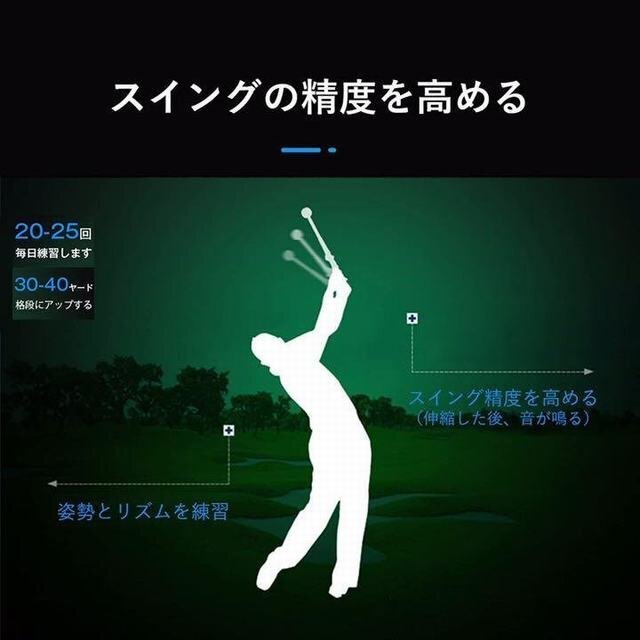 【ゴルフスイング練習器でスイング矯正できる】 ゴルフが上達しやすく、握りからフォームまでのゴルフ練習にオススメです。 ゴルフスイング練習器は伸縮式なので、収納場所にも困らず、携帯しやすいです。 【どこでもゴルフ練習できる】 ゴルフ室内練習に適したコンパクトの設計を採用したゴルフスイング練習器具なので、室内で手軽にゴルフスイング練習ができます。 出掛けした時やゴルフのラウンド前などの少しの空き時間でも練習ができるので、ゴルフスイングスピードが格段にアップ出来ます。コツコツゴルフ練習出来る方にはうってつけのゴルフ練習器具です。 【ゴルフ練習者に使い易い形に設計され】 このゴルフ練習器具はゴルフ関する筋肉を増強することで、スイングの力を増強できます。スイングのペースも速めます。ゴルフに必要な体幹を鍛え、スムーズなボディーターンをマスターできるスイング素振り練習用具です。正しいゴルフグリップの握り方を練習できます。正確な位置をちゃんと把握できるように訓練し、投げることや過度の振りを防止し、ゴルフの熟練度を上げます。 【基本ゴルフグリップを再現したモデルグリップ】 こちらのゴルフ練習器具は基本グリップを再現したモデルグリップ付きです。初心者の方が使えば上達が早まるのはもちろん、中?上級者の方もグリップの見直しにも大活躍です。日々のゴルフ練習で正しいグリップが意識できますので、上達の近道になります。