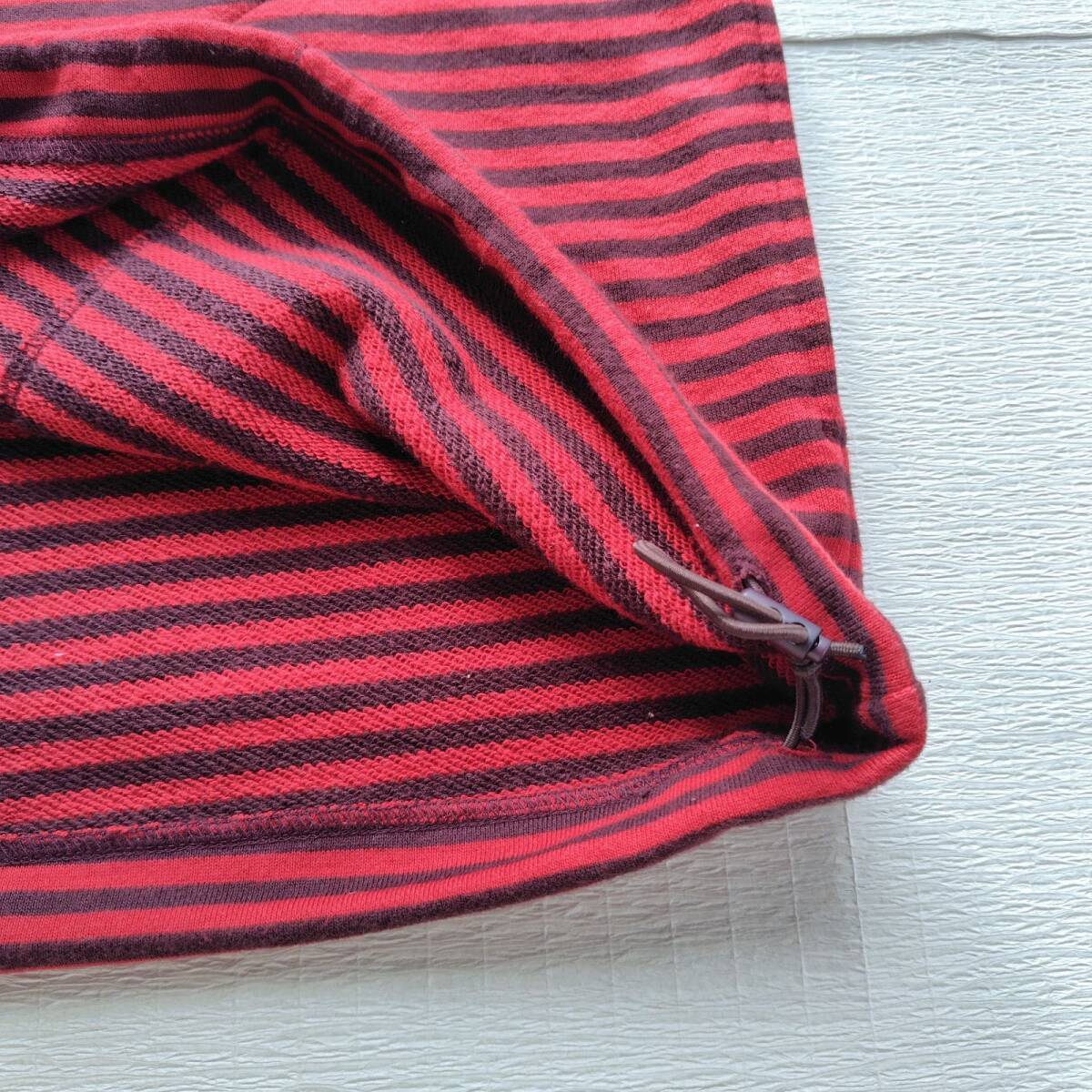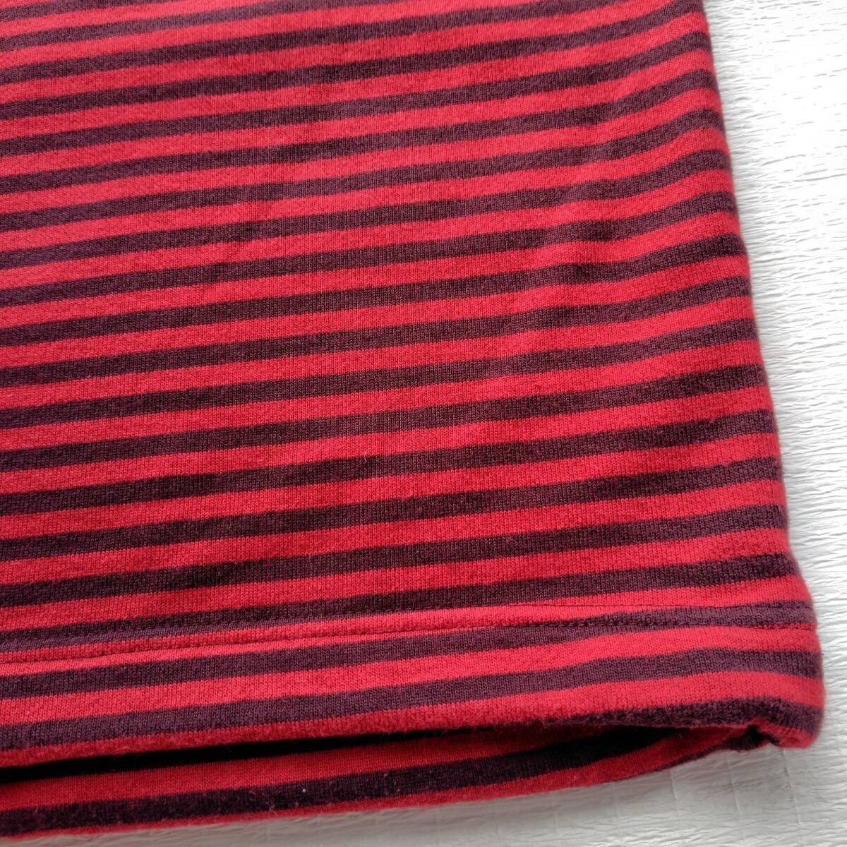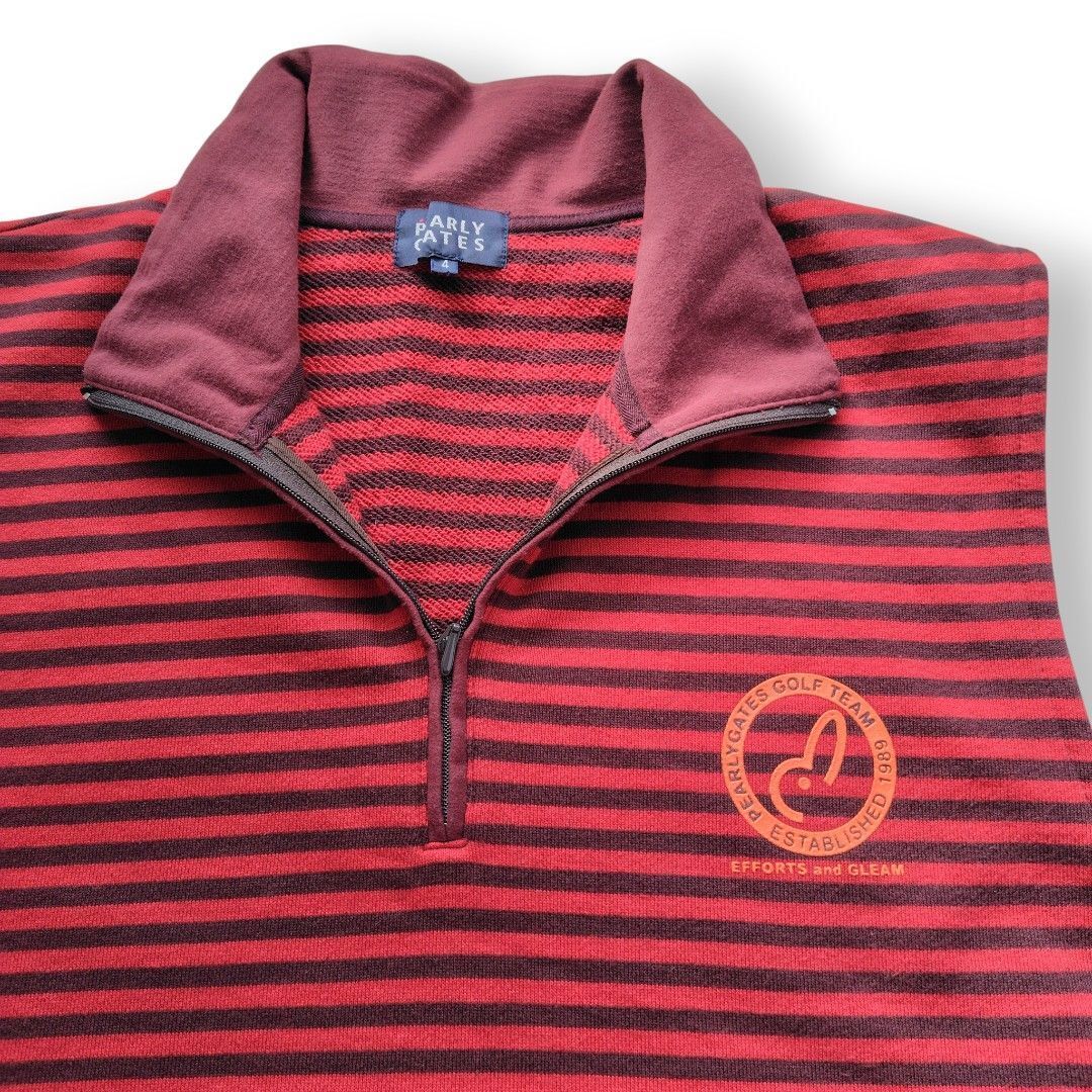 こちらは、レッド×ダークネイビーのボーダー柄が印象的なハーフジップベスト。