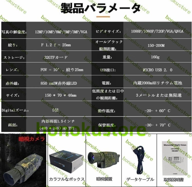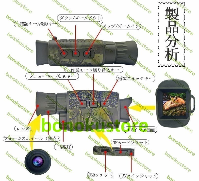 *状 態 新品未使 最大倍率 5 x 最小倍率 5 x この商品について 赤外線ハンティングカメラ:CMOSセンサーを備えたデジタル単眼鏡は、40mmの対物レンズで最大5倍の光学倍率と5倍のデジタルズームを実現します。内蔵の赤外線イルミネーターにより、完全に暗い状態で最大656フィー