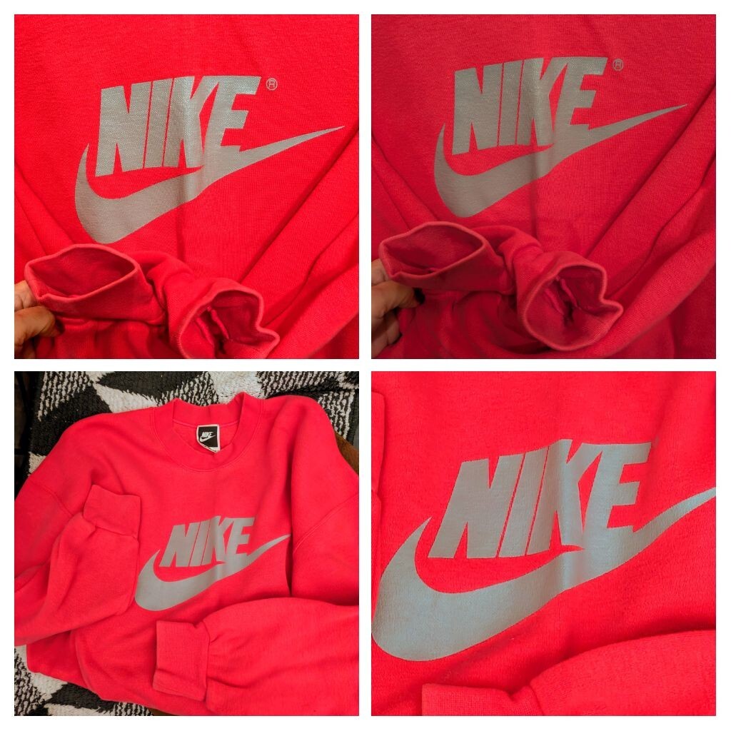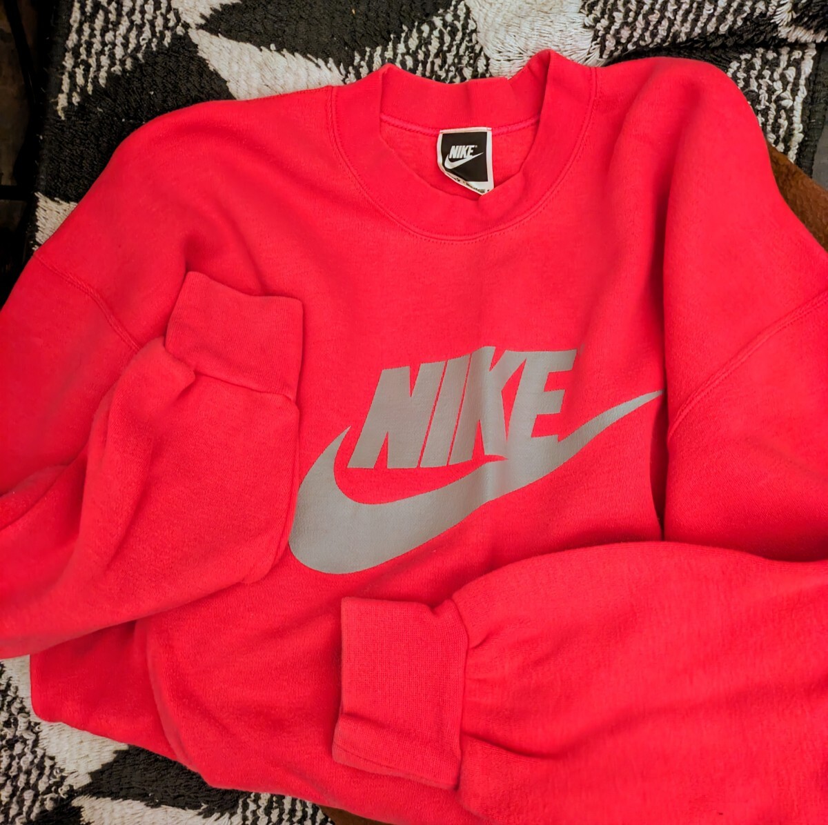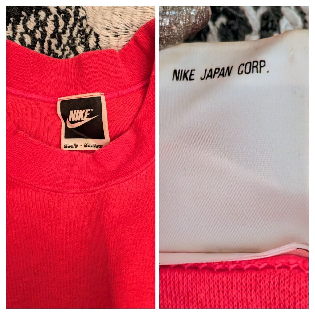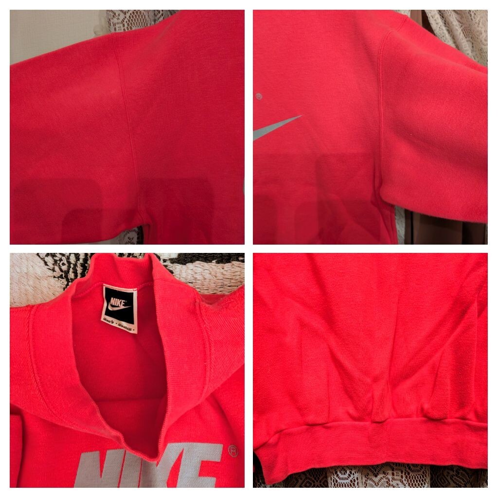 使用や保管に寄ります、擦れ、リブ(袖口)のヨレや、畳みシワ、多少の褪せ等御座いますのですが、ナイキのスウッシュのロゴ箔プリントに剥がれ等無く、未だ々十分に♪御活用して頂けると思います★