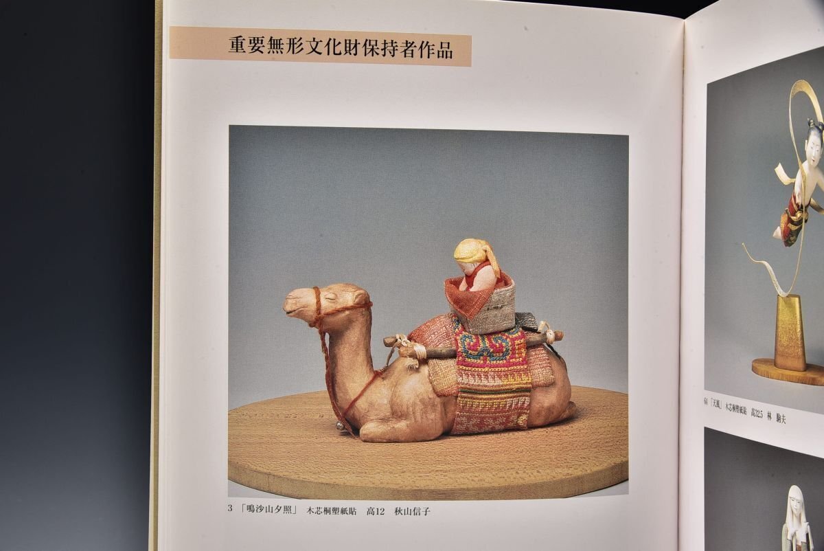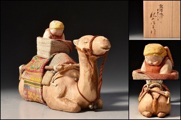 U08678 人間国宝 秋山信子 砂丘 鳴沙山 夕照 駱駝 人物 人形 敦煌 鳴沙にて 共箱 伝統工芸人形展 図録掲載作品 /G183