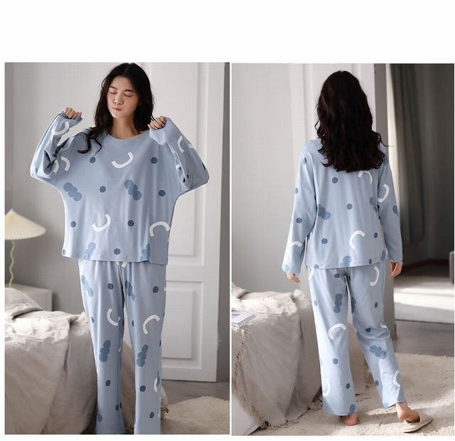 長袖 半袖 ショットパンツ ルームウェア 長パンツ 涼しい 部屋着 上下セット 春秋 部屋着 寝間着 ブルー XL