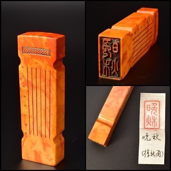 U04109 寿山石 彫刻 印鑑 「晩秋」 中国古美術 書道道具 文房具 唐物 古玩 /2V