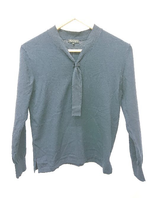 ◇ ⊆ INDIVI インディヴィ ボウタイ 長袖 ニット セーター サイズ38 ネイビー レディース E
