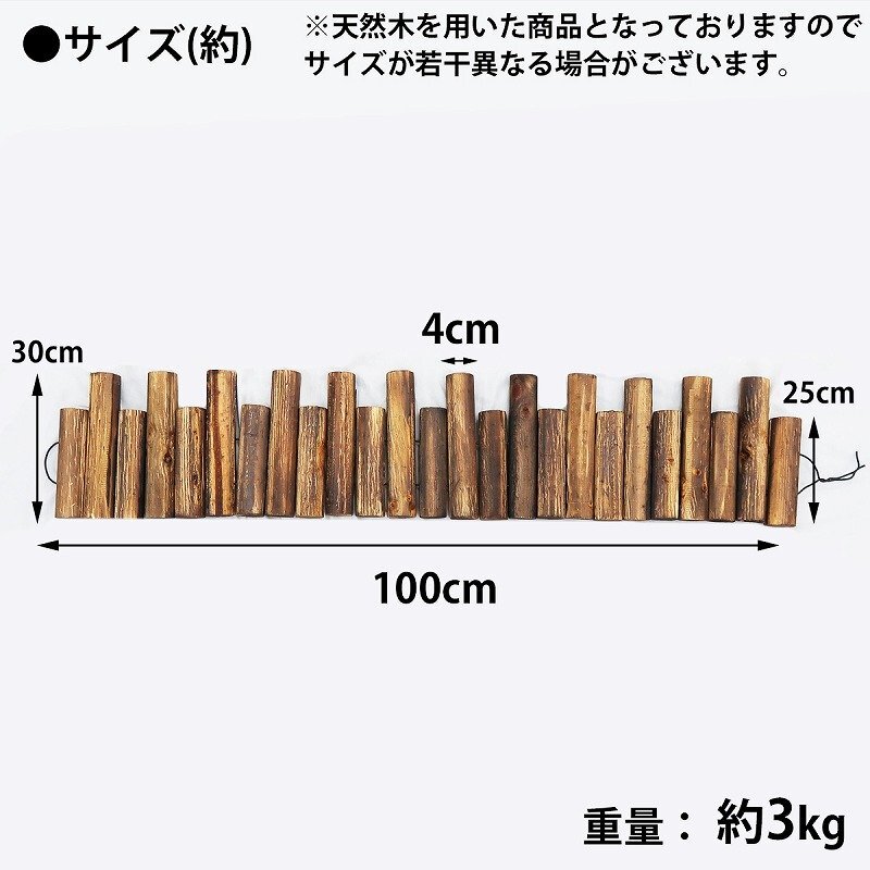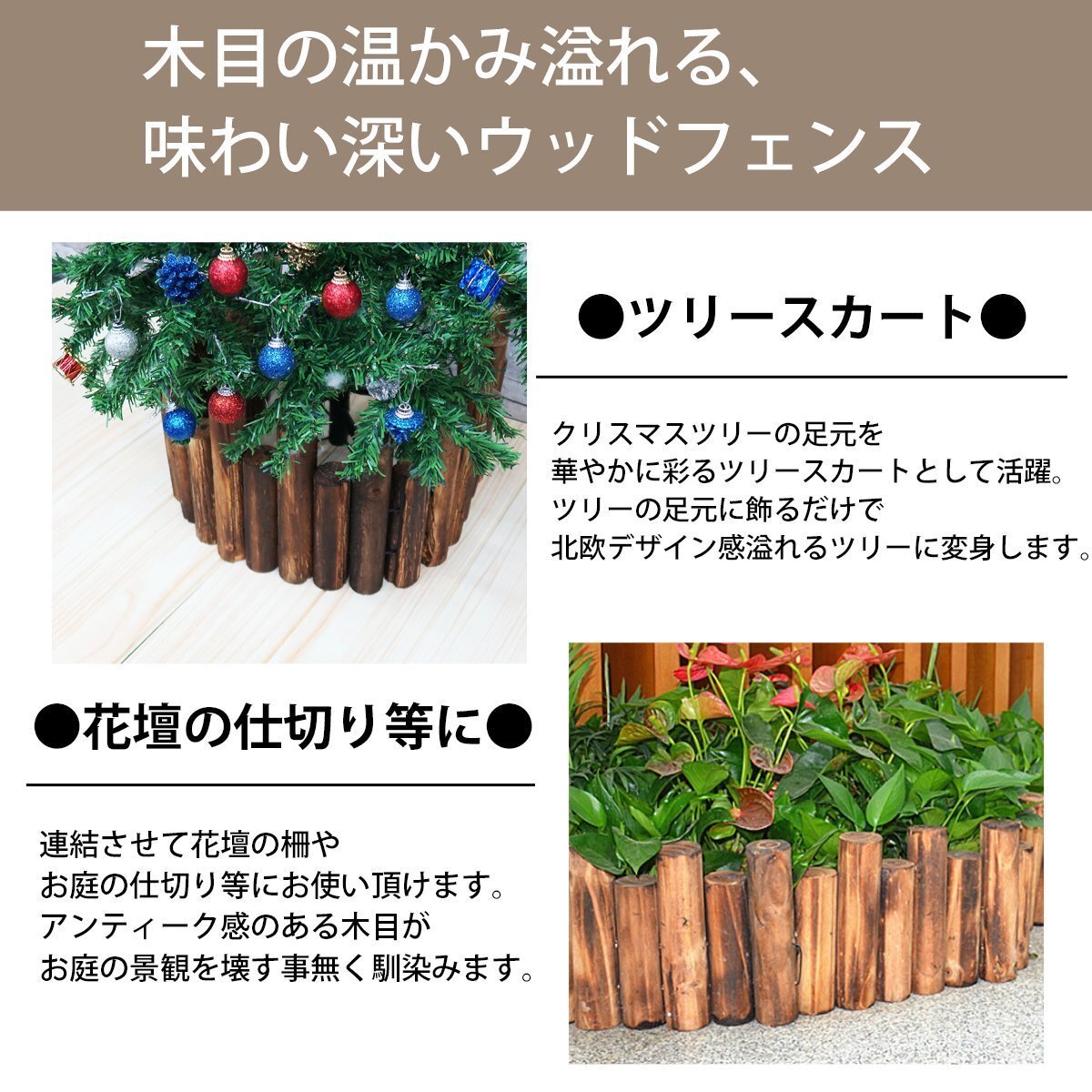 素敵なムードを演出する木製ツリースカート/ガーデンフェンスが登場! 天然木を用いたおしゃれで使いやすいウッドフェンス。 落ち着きのあるブラウンカラーが見た目からも癒しを与えてくれます。 味わい深い焼き入れ加工が施された渋さを感じるデザインが、 お庭やお部屋の雰囲気をグッと引き締めるアクセントになってくれます。 用途に応じて複数連結させて使って頂く事で、自由にレイアウトして頂けます。 足元に敷くだけで北欧風の雰囲気あるツリーに大変身! 当社自慢のクリスマスツリーとも相性抜群です! シンプルなツリーも良いけど何だか味気なく感じる・・・、といった方にオススメの「ツリースカート」です。 ツリーの足元に飾るだけでツリーを華やかに彩ってくれます。 デザイン性を追及した本格派ツリースカートで 例年以上にオシャレで、雰囲気のあるクリスマスを過ごしてみてはいかがでしょうか? クリスマスツリーの足元を彩るツリースカートとして使えるだけでなく、 お庭の花壇等を豪華に飾りつけるガーデンフェンスとしてもお使い頂ける商品となっております。 素材:天然木 サイズ(約):画像をご参照下さい。 ※天然木を用いた商品となりますので多少の割れや固体差がございます。 ※加工の都合上、表面が黒ずんで見えますがカビや汚れではございません。 |