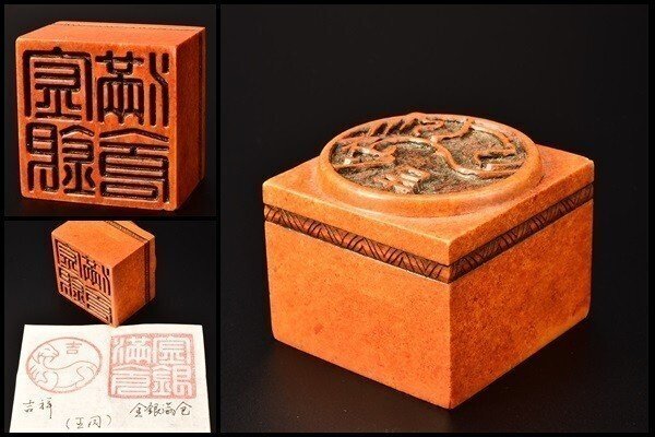 U04302 寿山石 彫刻 印鑑 中国古美術 書道道具 文房具 唐物 古玩 /KN
