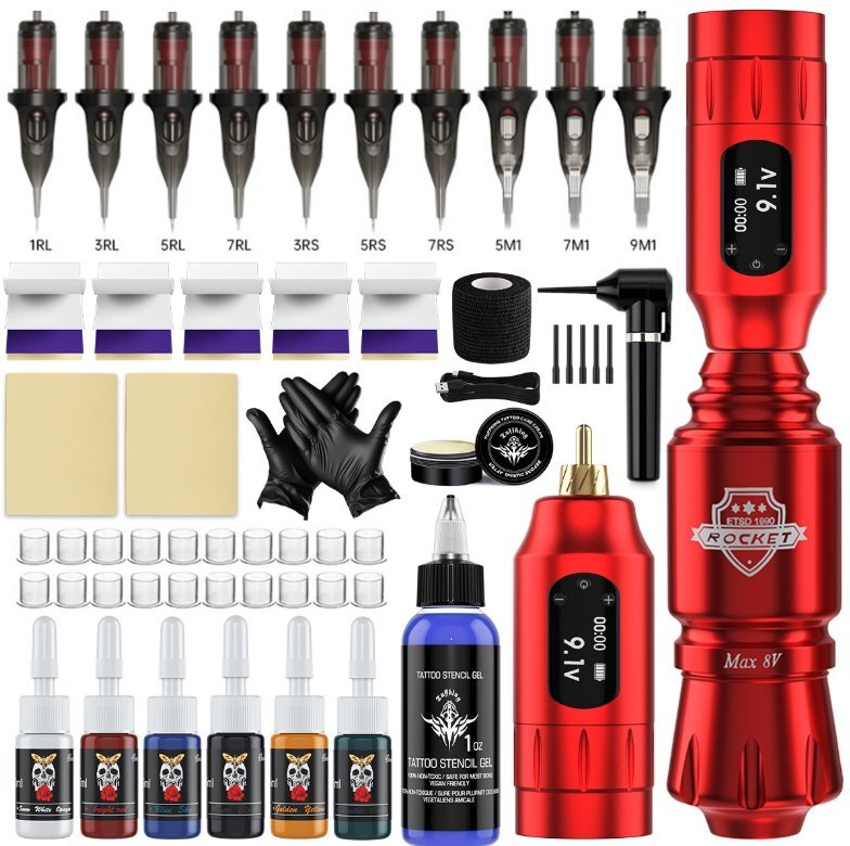 デュアルバッテリーワイヤレスタトゥーペン刺青機セットオールインワン持続航続可能ストローク刺青機器
