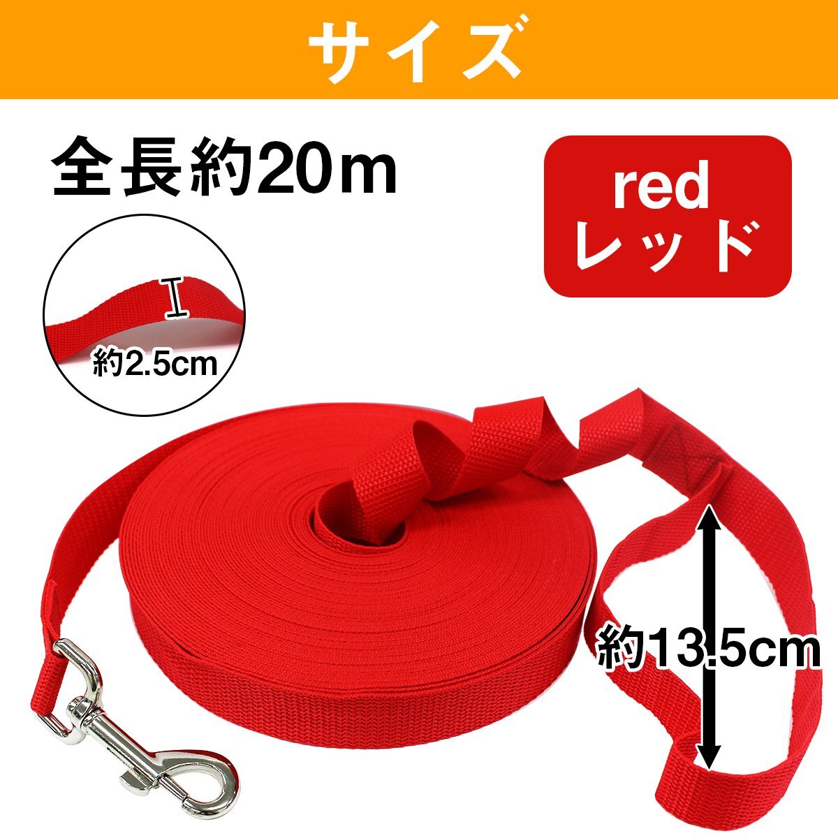 【送料250円】犬用 ロングリード 20m 幅2.5cm 耐荷重 50kg レッド 赤 ハーネス リード 散歩 紐 ナイロンベルト 小型 中型 大型犬 ペット 犬