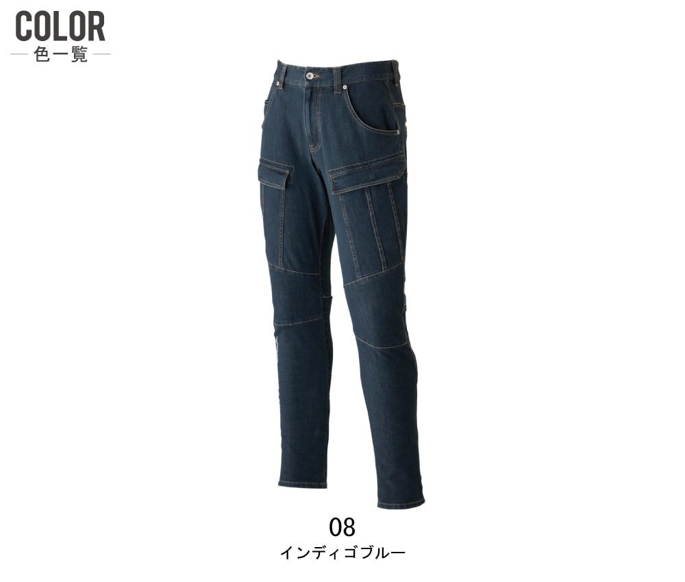 特長:ダブルストレッチ/コインポケット/ホック付カーゴポケット/膝ダーツ