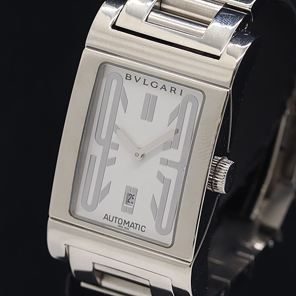 1円 稼働 良品 ブルガリ レッタンゴロ RT45S AT/自動巻 ホワイト文字盤 メンズ腕時計 0280500 12BGT SMZ