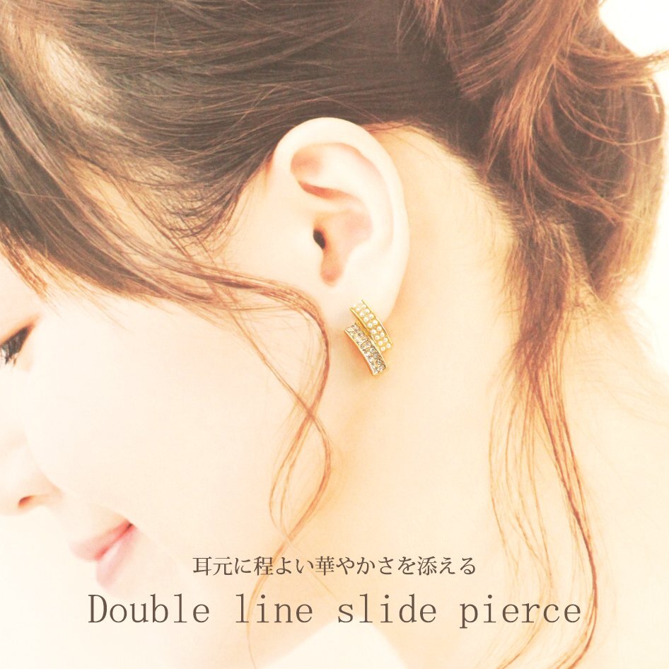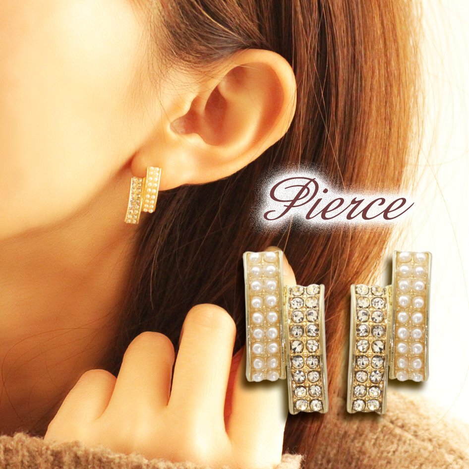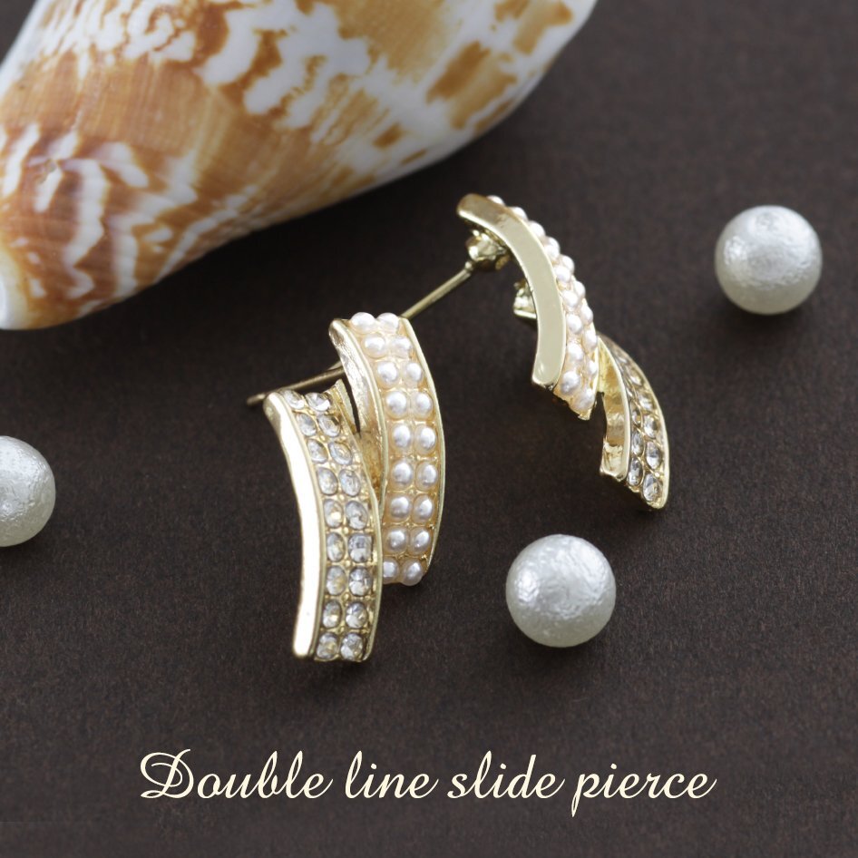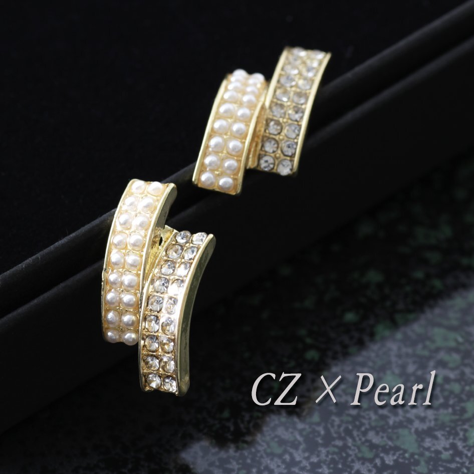 新品/ピアス/レディース/パール/真珠/ダブルライン/ゴールド/合金/両耳/上品/大人/女性/華やか/フォーマル 結婚式 卒業式 入学/ダイヤ/CZ