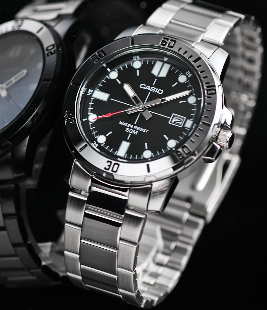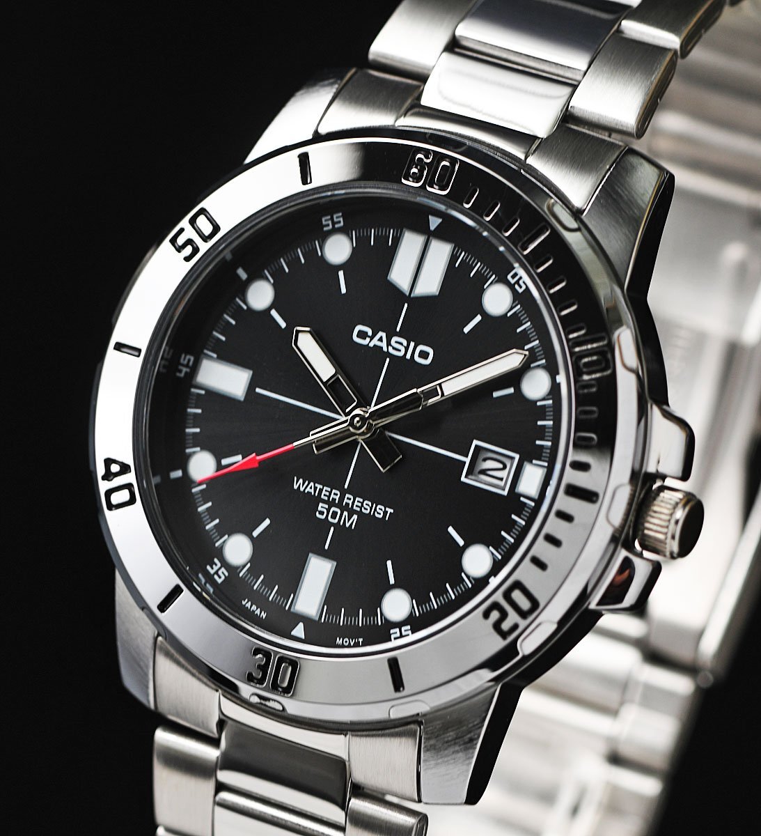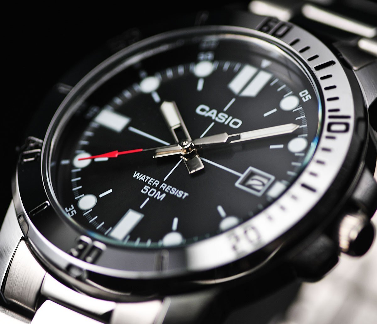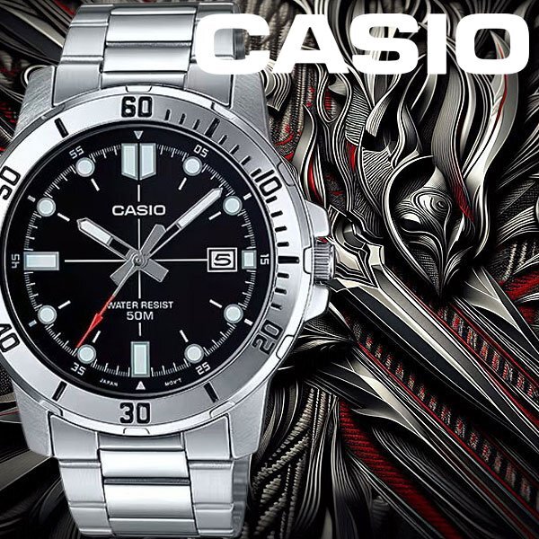 逆輸入カシオ 最新作 新品1円 シンプルで視認性高い 精悍ブラックメタリック 50m防水 腕時計 未使用 CASIO メンズ 激レア日本未発売