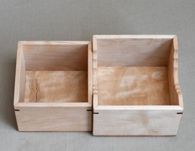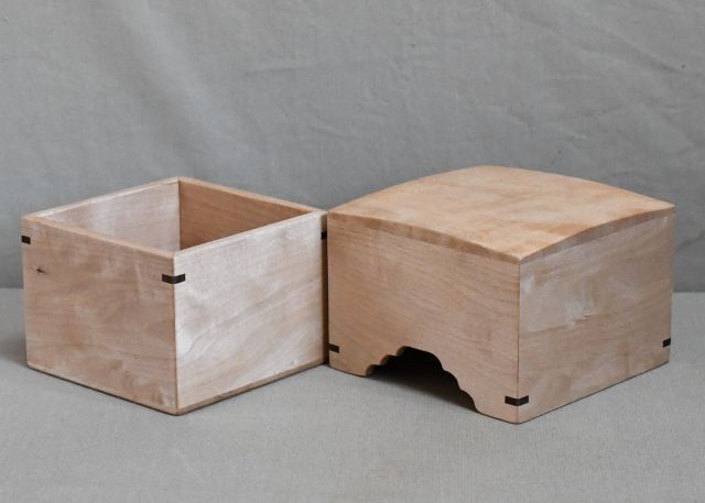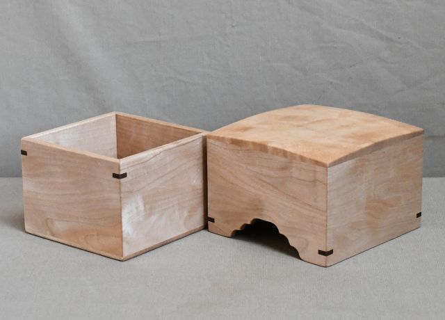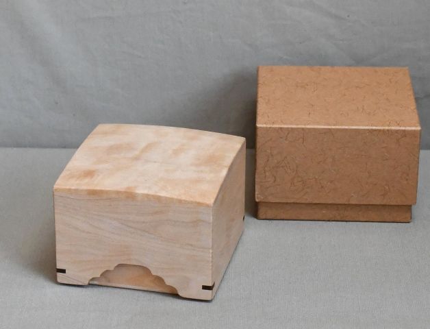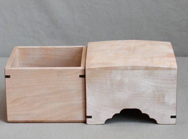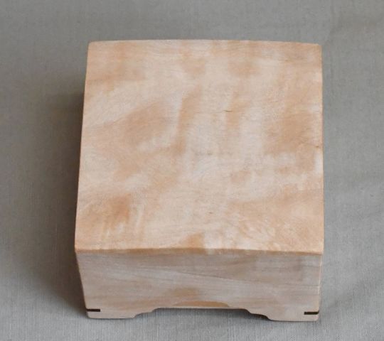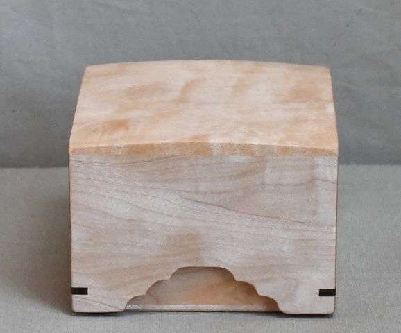 | 商品説明 | モミジの駒箱です。 天板は四隅3mm前後落としゆるく全体に丸みを付けています 側板厚は約6mm、上板の厚みは8mm前後底板は5~6mm前後です。 上板・底板は枠にカギコミして枠に落とし込んでにして組んでいます.。 植物性グロスクリヤーオイル仕上げ。 サイズ W108 D108 H77 蓋の下り速度は2~3秒程度です。 *オイル仕上げですので漆仕上げ同様に木の感触が良いです。 | |