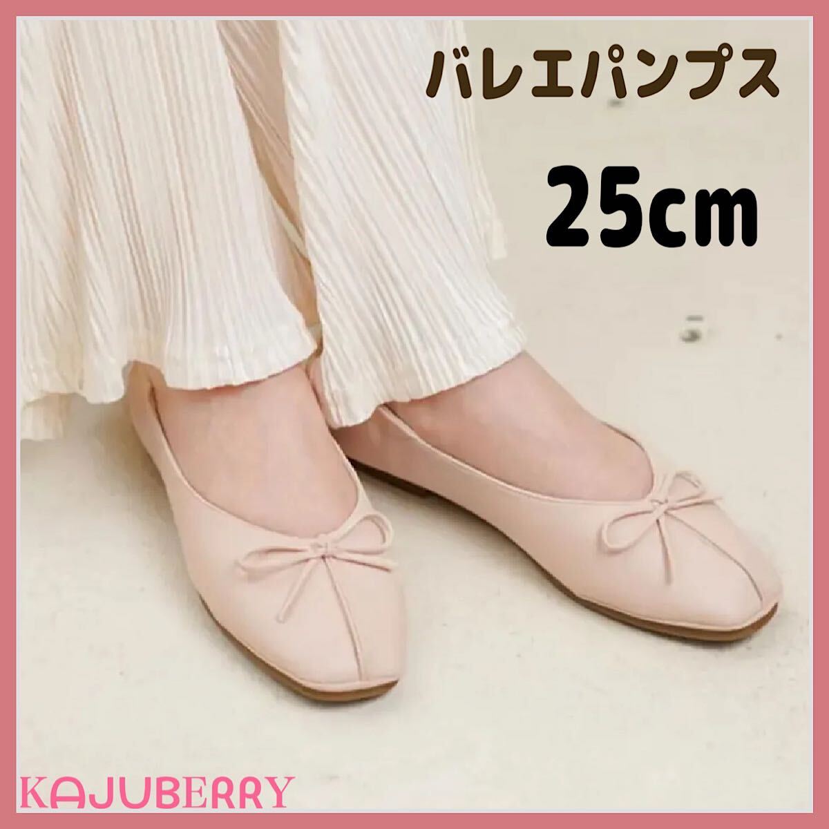 新品 リボンバレエパンプス 韓国 オルチャン ピンクベージュ 25cm フラットシューズ