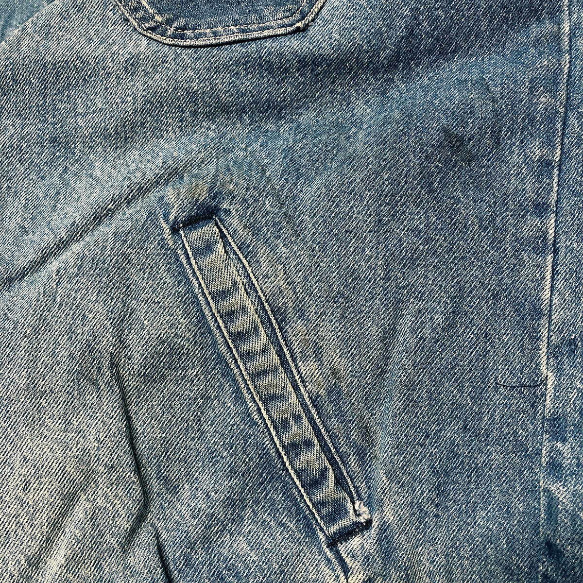 中古品です。使用感があります。両腕や胸やフロントポケットなどボディの所々に汚れやシミ、両袖先や裾やフロントポケット入り口に小さなホツレがあります。